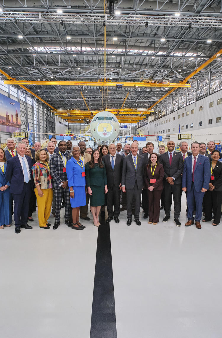 Airbus executive leadership and team members, elected officials, customers and community leaders gathered inside the newly-built FAL to celebrate the milestone for Airbus, the City of Mobile, the State of Alabama and commercial aircraft manufacturing in the U.S.