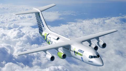 The E-Fan X is Airbus’ hybrid-electric demonstrator. In the test aircraft based on the BAe 146 RJ100, one of the four jet engines will be replaced by a 2MW motor. Other modifications to the BAe 146 RJ100 include the addition of large, externally mounted heat exchangers for liquid cooling systems, as well as intakes and an exhaust for the fuselage-mounted power generation system.