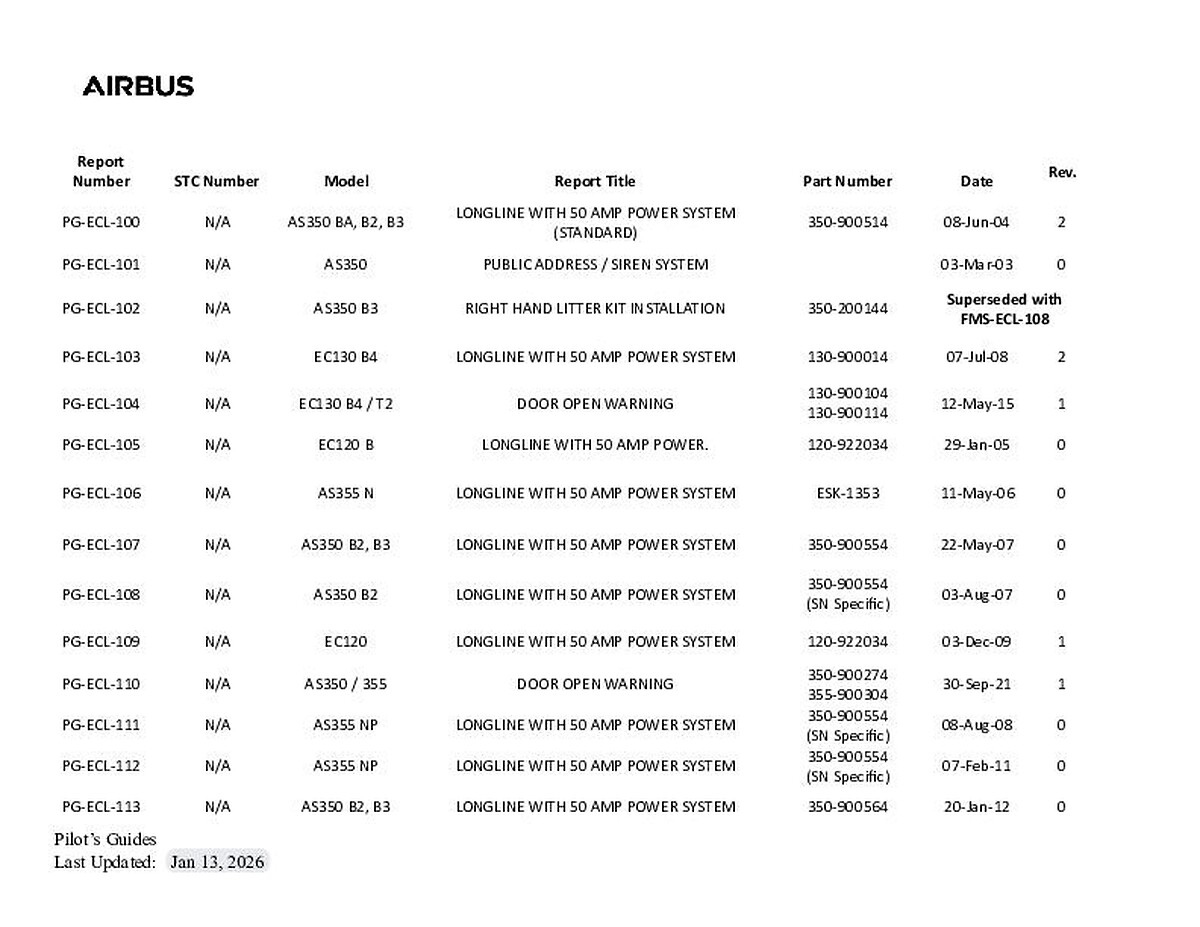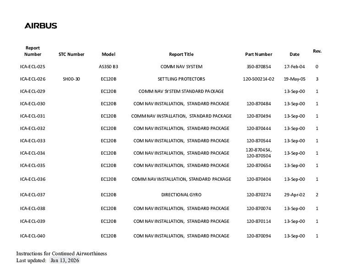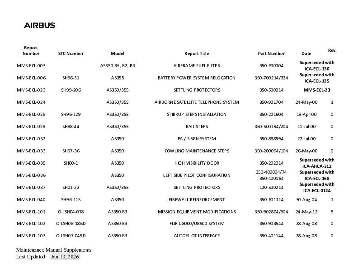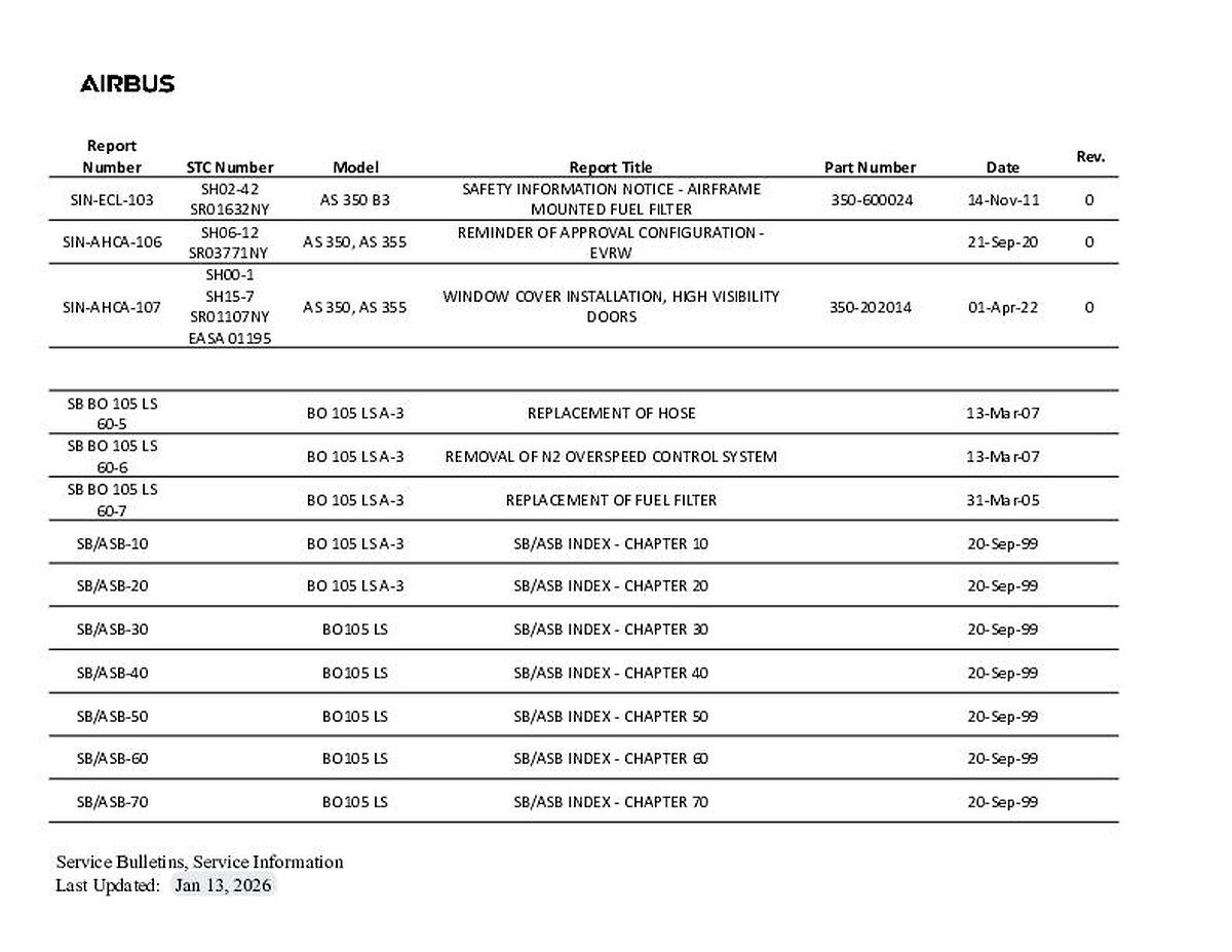 - Revision Status, Flight Manual Revision Status and Alert Service Bulletins are now available on this website