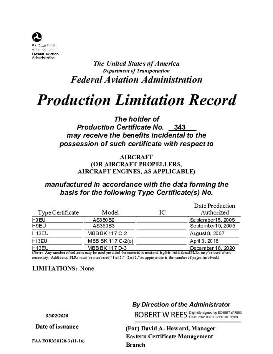 Aerospace Standard (AS) 9100 D is central to Airbus Helicopters Inc.’s Quality Management System. Its primary facilities in Grand Prairie, Texas, and Columbus, Mississippi, are AS9100 certified by CMA Quality International. The company has strong ties with FAA and EASA, holding Production Certificates, Limited Repair Stations, and Part Manufacture Approvals at both U.S. locations.