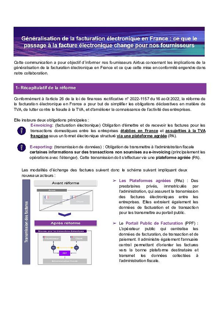 For more information of the French e-Invoicing reform and the impact of these new requirements on our collaborative operations, please refer to the dedicated communication: