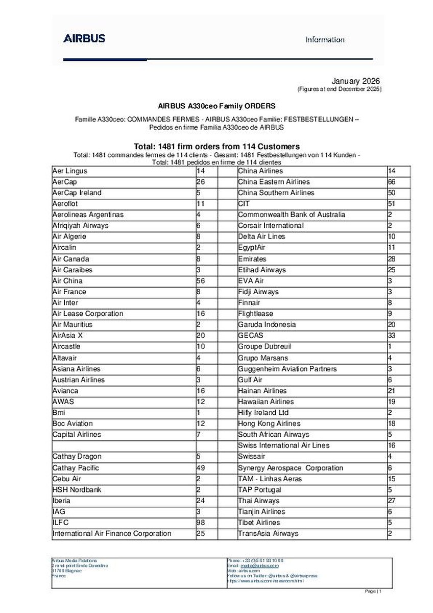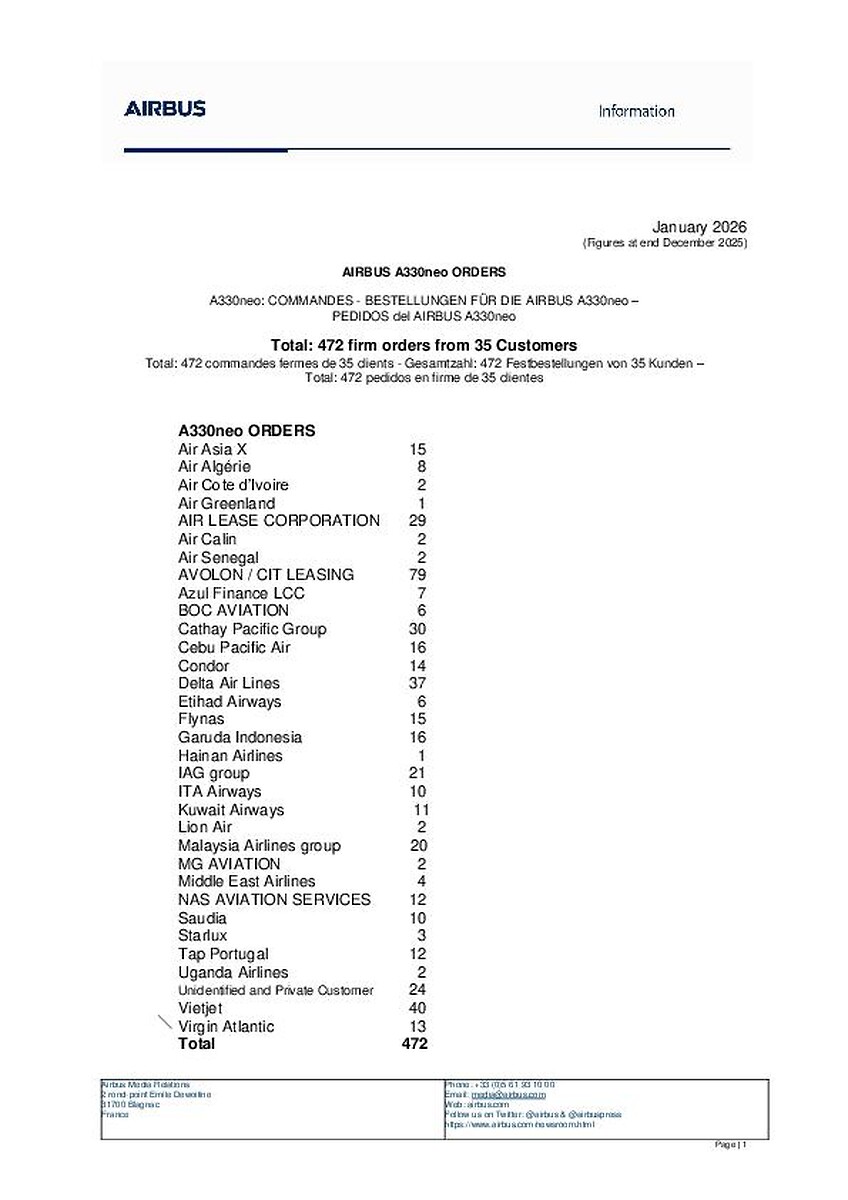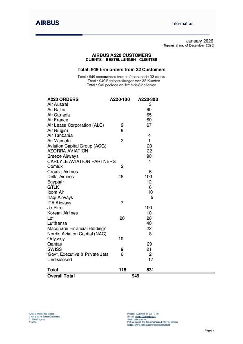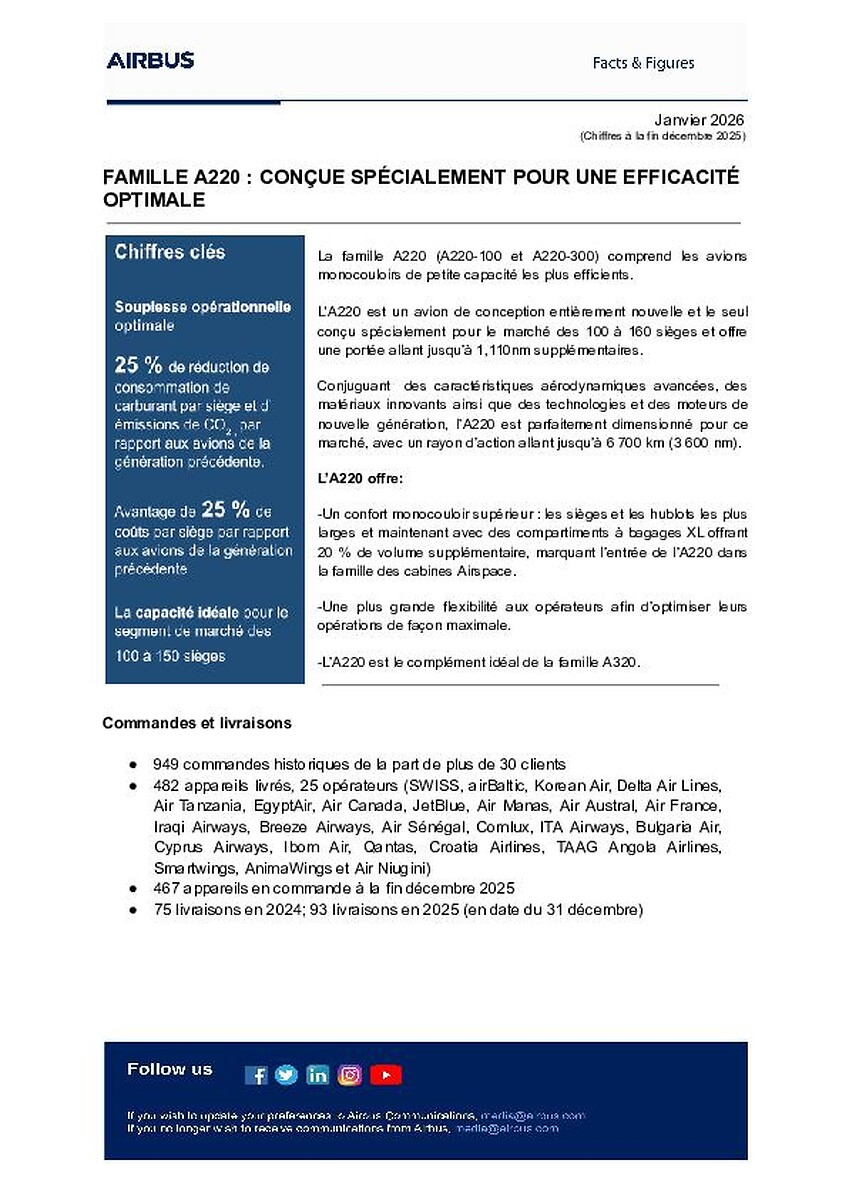 Airbus A220 Facts and Figures Janvier 2026 - French