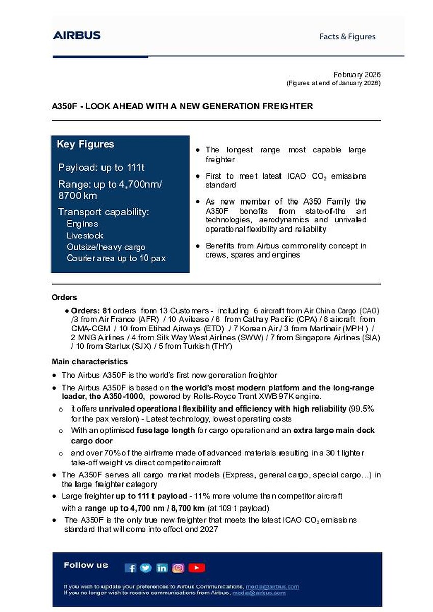 Airbus A350F Facts and Figures February 2026