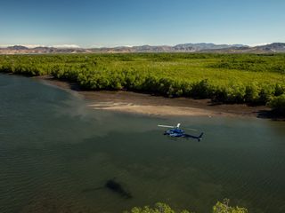 Two helicopter pilots are employed, a man and a woman, to fly the H125s that the producers typically hire on location. A Sony F65 camera sits in the nose of the helicopter; its powerful lens lets the aircraft remain relatively distant from the action while zeroing in up to 1,000 mm on scenes of a sensitive nature. This has allowed the crew to capture footage of wild horses atop a cliff, and of a man spearfishing in solitude.