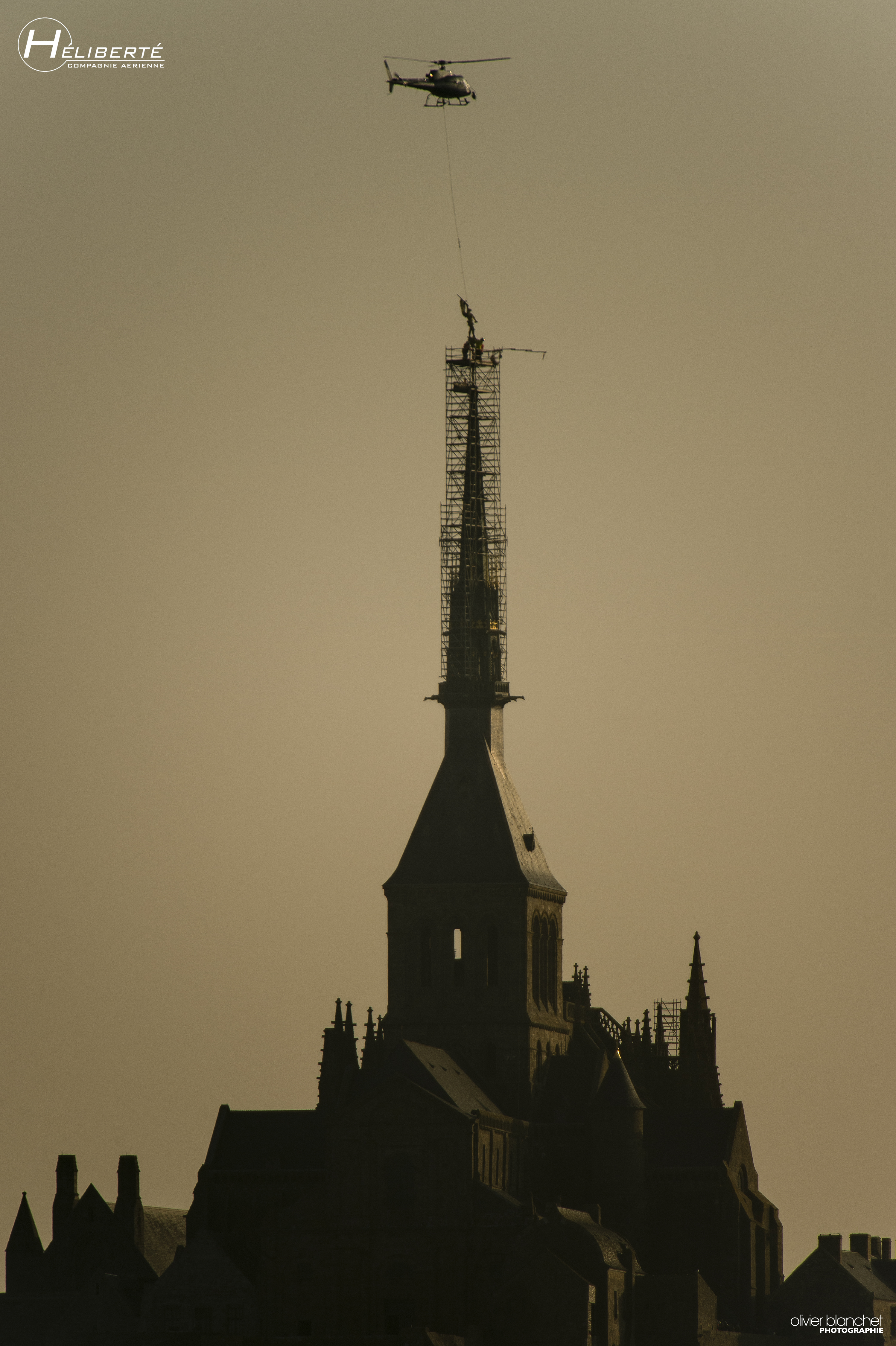 Pose de l'Archange au sommet du Mont Saint-Michel