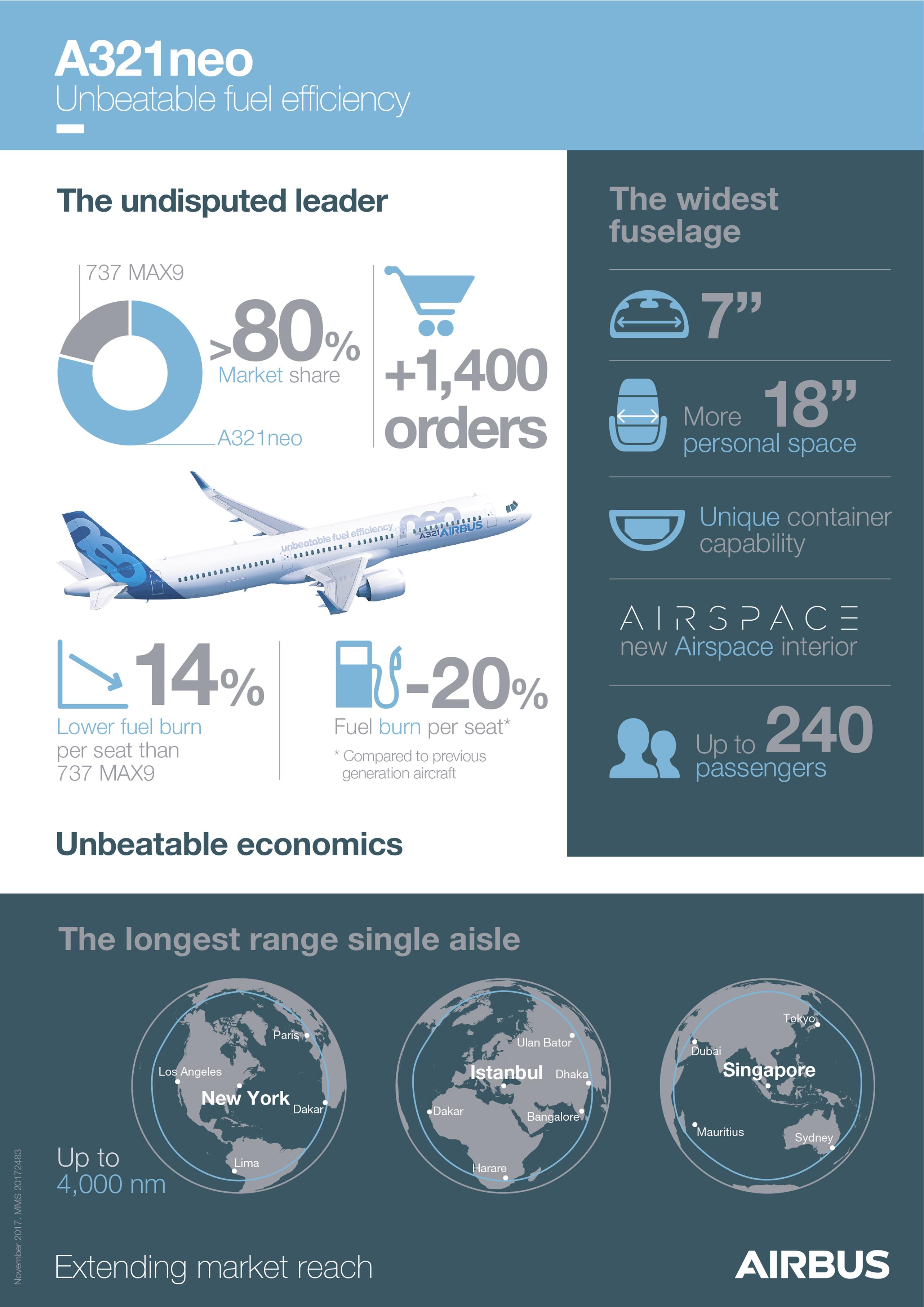 Airbus’ A320neo Family offers unbeatable economics in terms of fuel and cost efficiency. The in-service A320neo fleet already is meeting or exceeding the specifications for fuel burn, time-to-climb and noise levels.