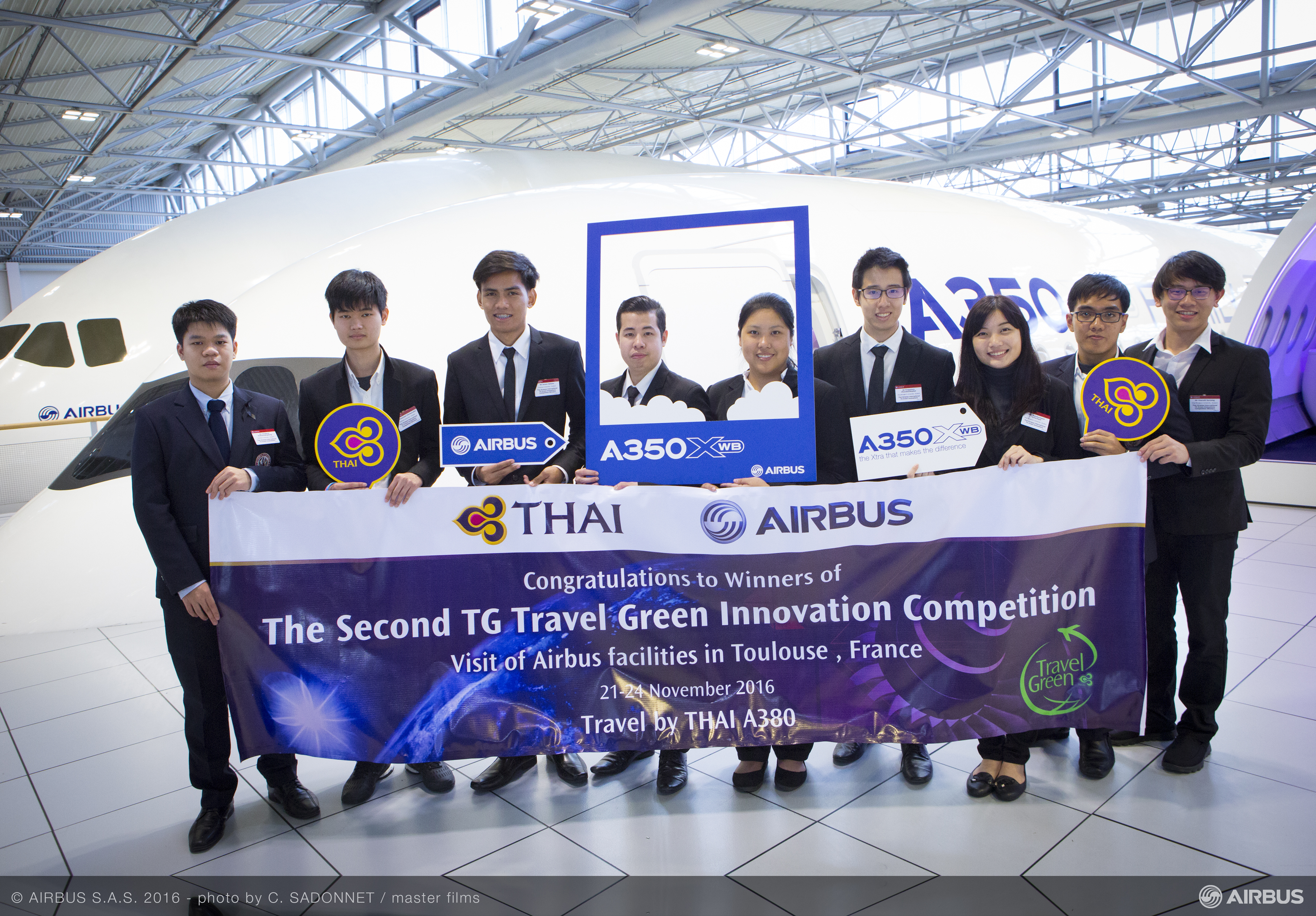 Thai Airways International (THAI) is the sponsor of this contest, called “TG Travel Green Innovation,” with the nine winners from its second competition provided the opportunity to visit Airbus’ Toulouse, France headquarters during November.
