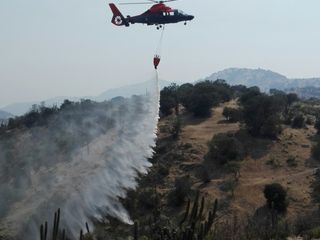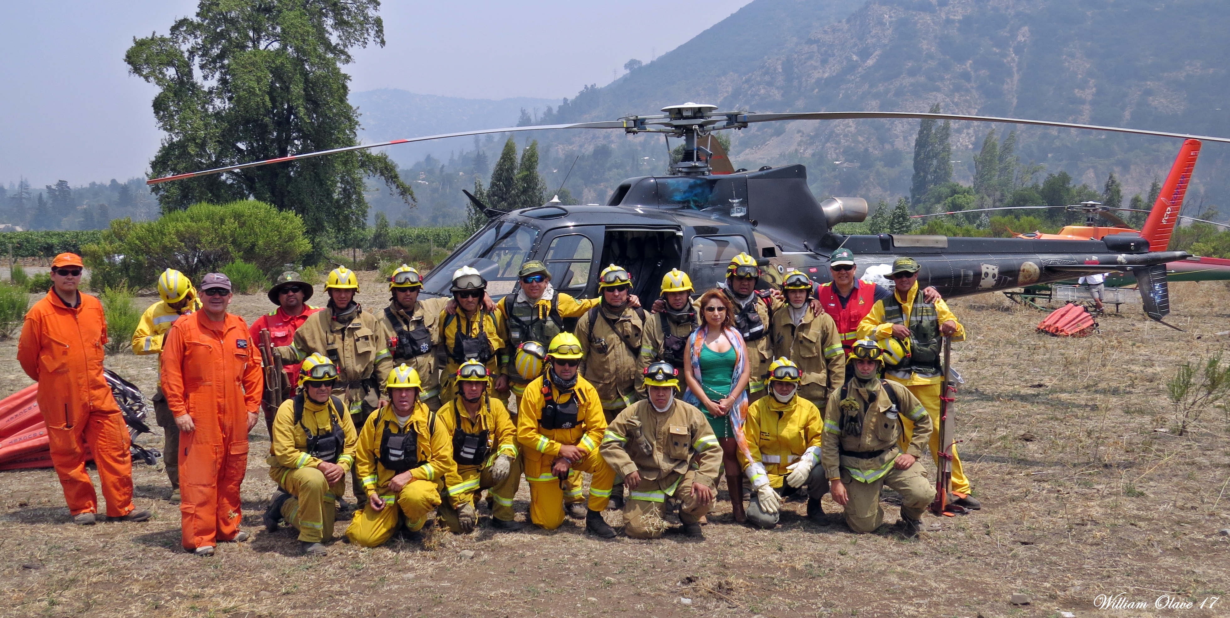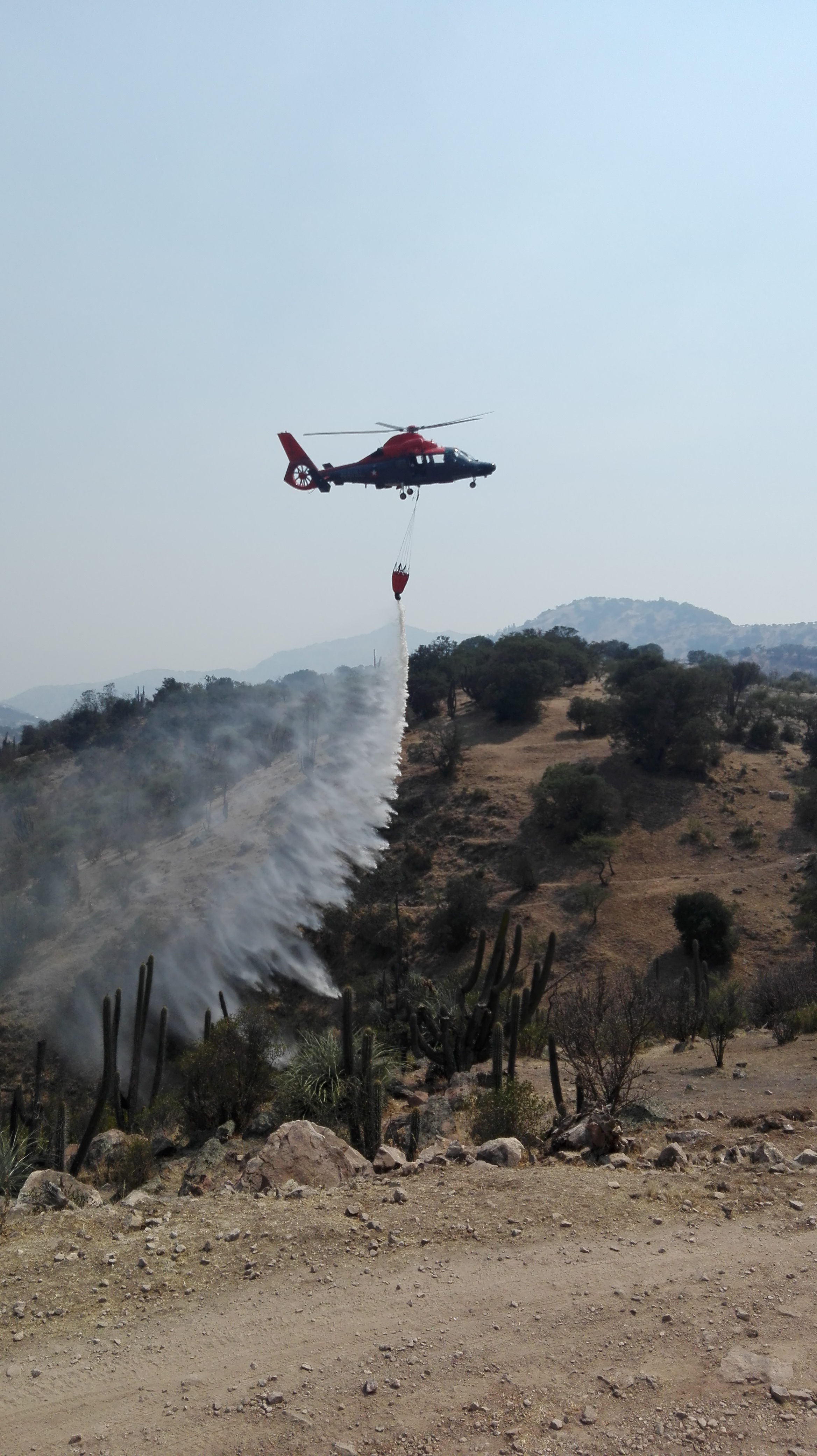 Captain Alessandro Pulleghini Flores of the Chilean Navy flew an AS365 Panther in the region of Pumanque, the then-epicenter of the fires, in mid-January. Under the direction and coordination of the Chilean National Forest Corporation (CONAF) and the Chilean Army, Pulleghini and his detachment were first sent to Coinco, 10 miles southwest of Rancagua. With bambi buckets slung to the helicopter’s underside, they attacked active fires, supporting the work of land brigades and helping to contain the fires. With Coinco controlled, Pulleghini was next dispatched to the region of La Patagua, east of Santa Cruz, where he battled fires for 6 consecutive days.