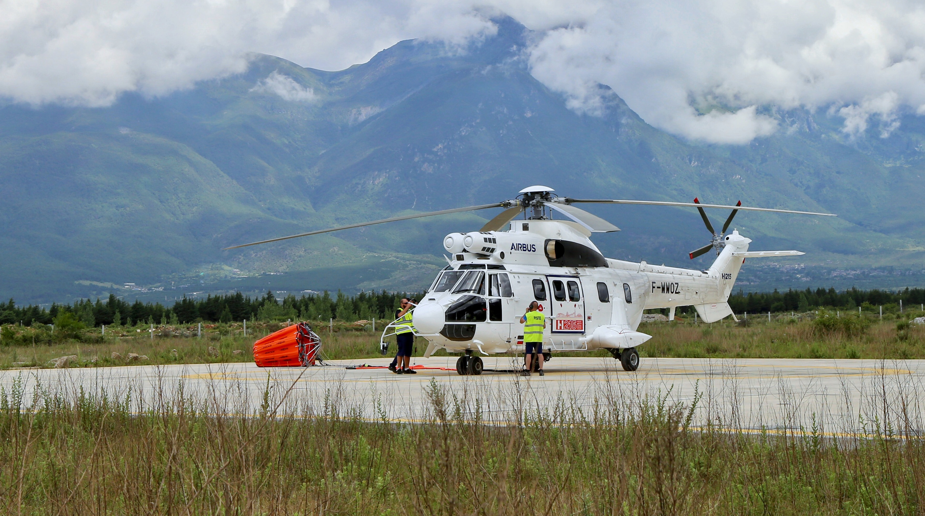 The H215 wraps up its two-week demo tour in China. The heavy twin is the latest member of the Super Puma helicopter family and known for its multi-mission and long-range capabilities. The demo tour included flights in Zhuhai, Shenzhen and Lijiang, covering more than 2,000 km across China and demonstrated its capabilities for firefighting, power line missions, law enforcement, and passenger transportation as well as its excellent performance in high and hot conditions.