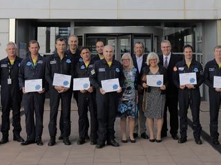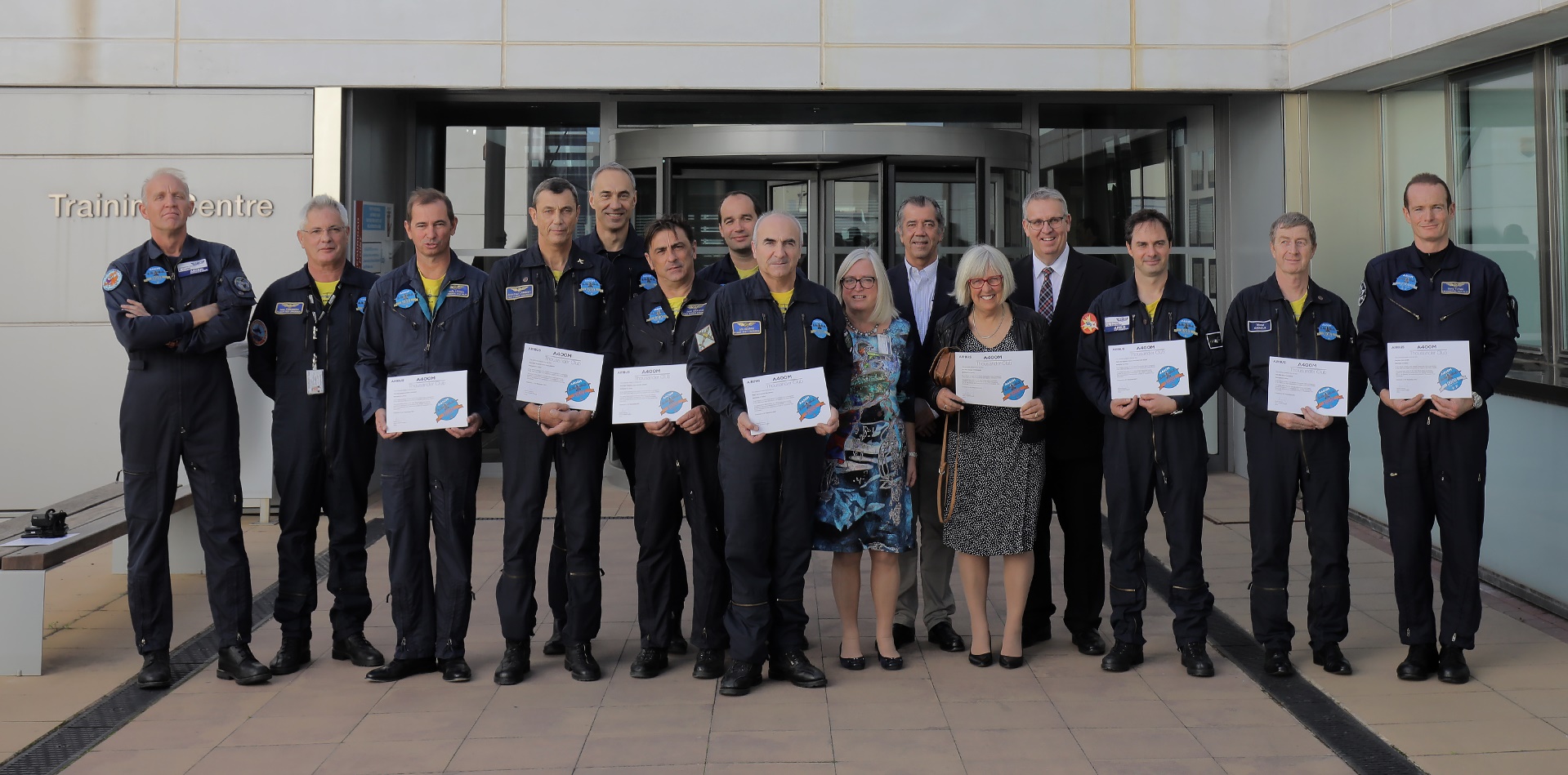 A total of 19 Airbus aircrew, including Airbus experimental test pilot Tony Flynn who uniquely has already recorded 2,000 hours, were subsequently honoured at the International Training Centre in Seville. Jane Strongman, widow of the late Ed Strongman, the first person to record 1000 hours on the A400M, received his award.