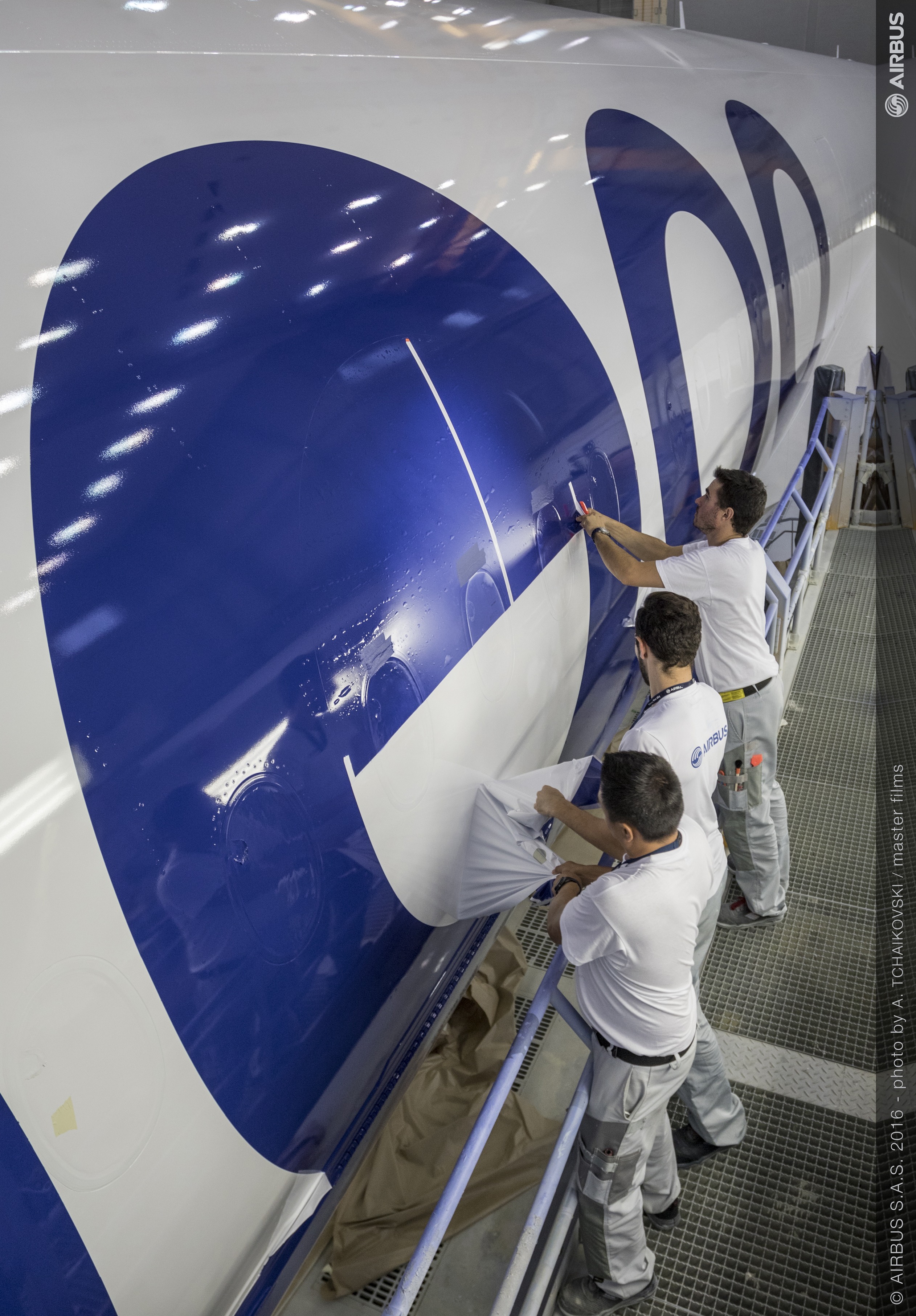 When a customer receives a commercial aircraft produced by Airbus at its Toulouse, France-area facilities – home to final assembly lines for the A320, A330 and A350 XWB jetliner families – they can be sure that the highest level of care went into to applying their livery, which is a critically-important element of an operator’s identity.