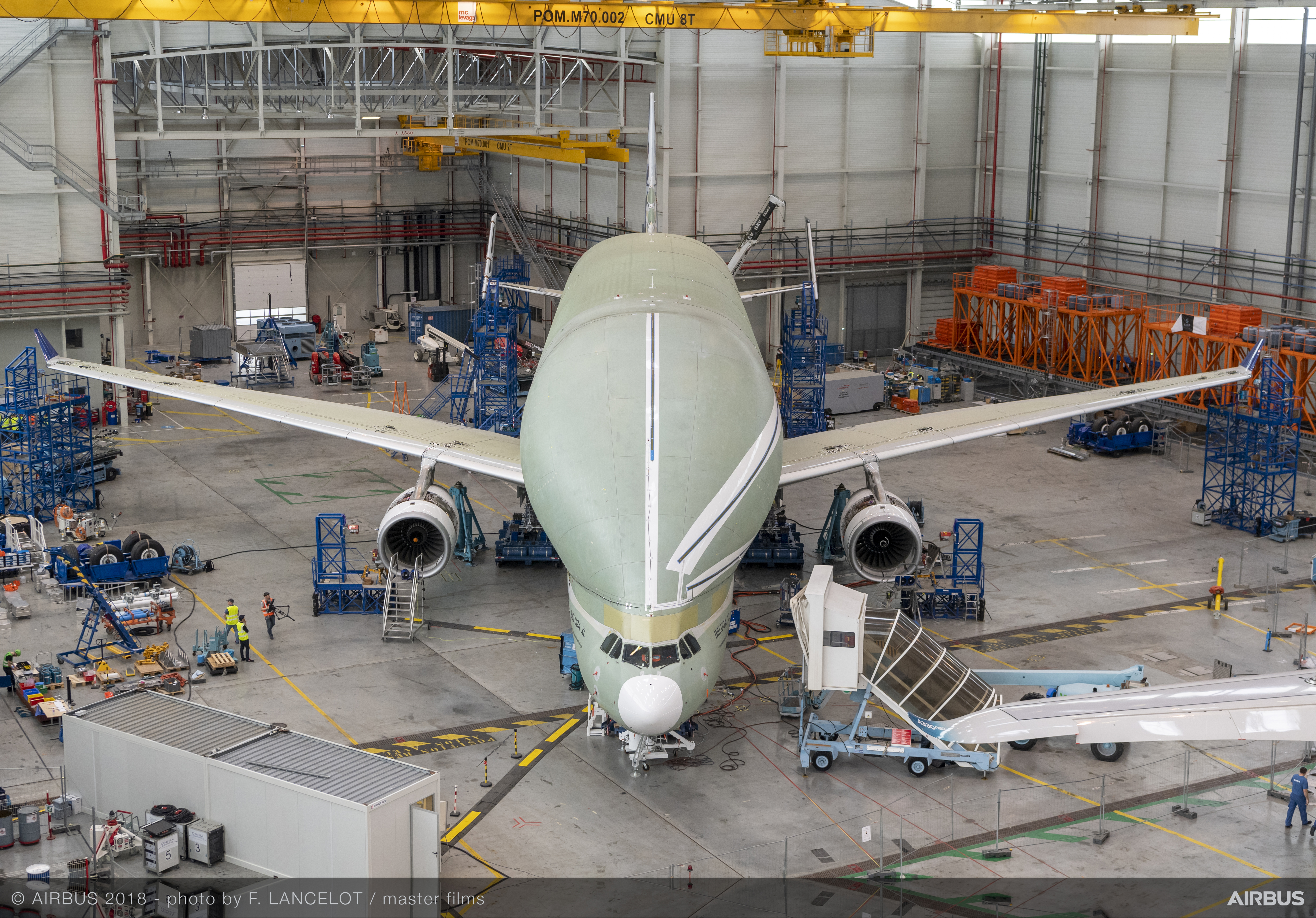 With the ground vibration tests now complete, subsequent steps ahead of the aircraft’s maiden flight include validating the flight test instrumentation and applying the BelugaXL’s special “smiling” livery.