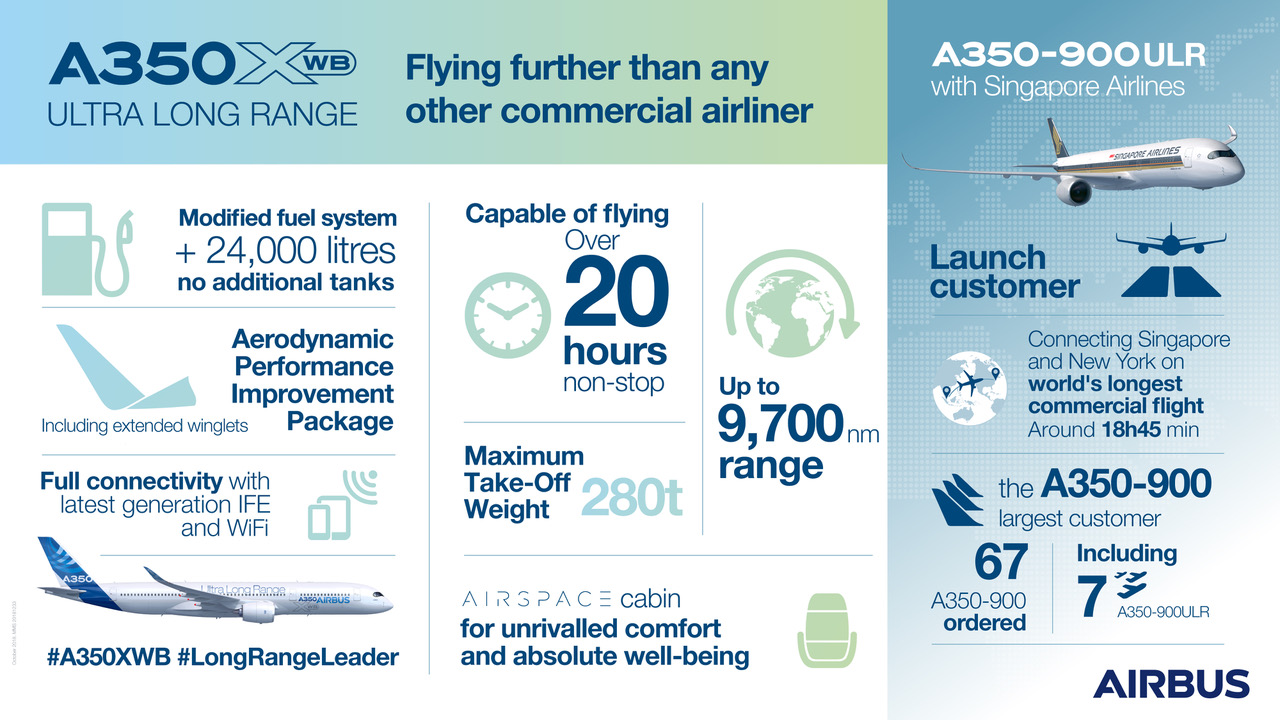 Launch customer Singapore Airlines introduces Airbus’ highly-efficient jetliner on the world’s longest commercial route