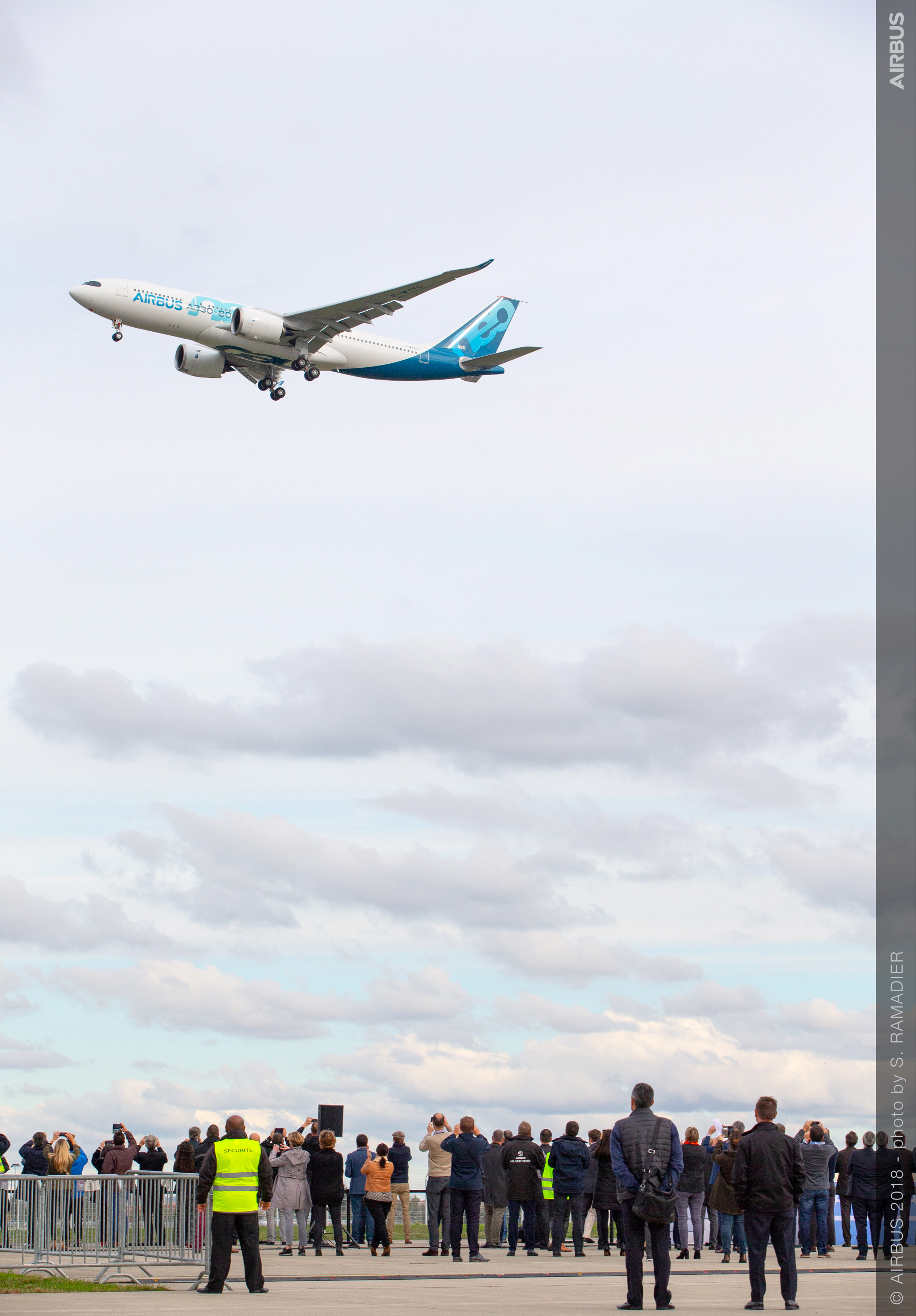 The Airbus crew for this first flight – Captain François Barre, Copilot Malcom Ridley, Test Flight Engineer Ludovic Girard, as well as Flight Test Engineers Catherine Schneider and Jose Angel Corugedo Bermejo – put the aircraft through its paces and highlighted the new-generation jetliner’s operational advantages.