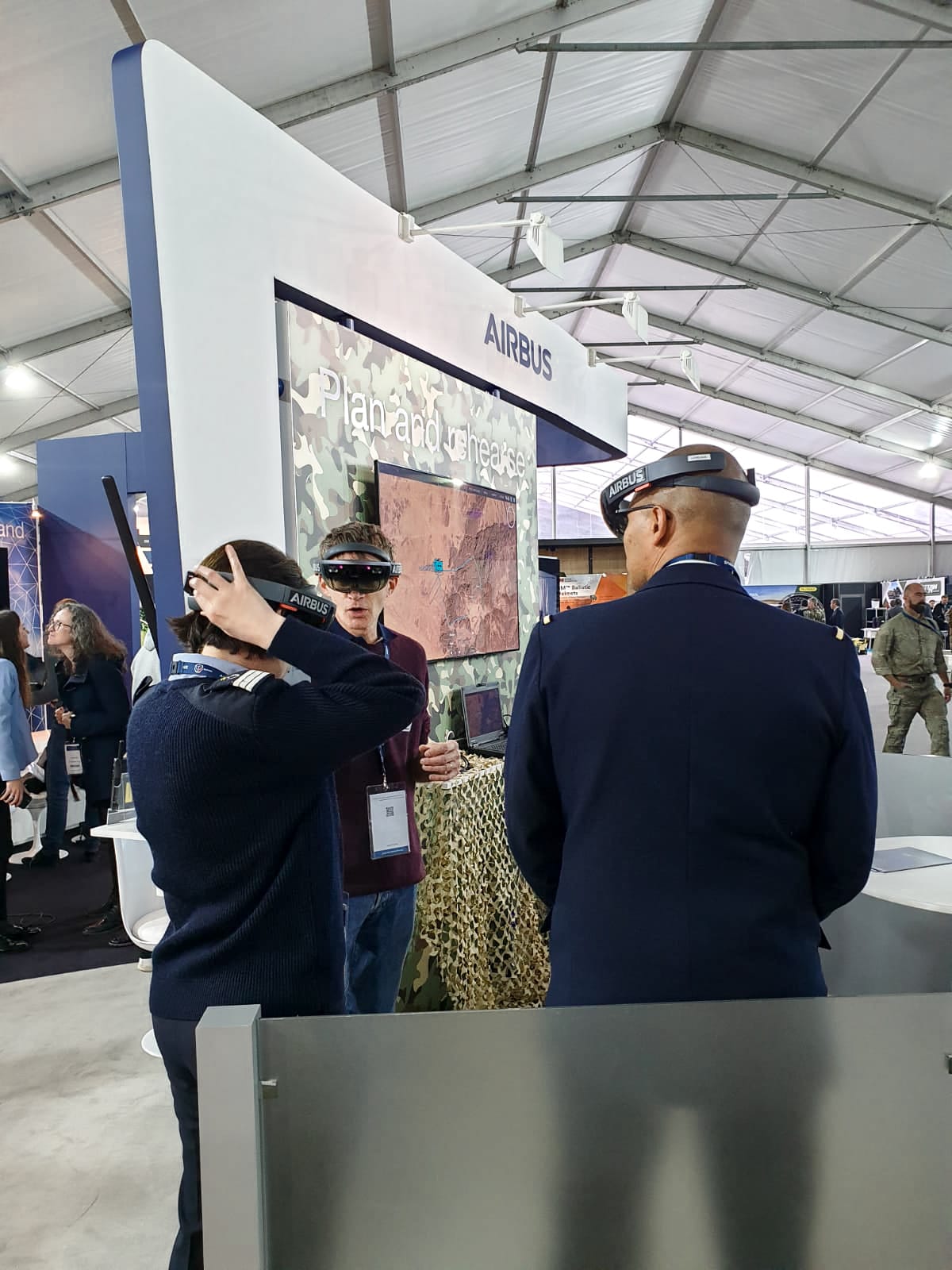 Last, the Airbus ‘Holographic Tactical Sandbox’ which facilitates mission preparation by providing a 3D holographic map viewable in an augmented reality helmet. Integrated into the chain of command, this tool provides an accurate 3D representation of the battlefield using information supplied by Airbus’ Fortion® TacticalC2 application. Operators can view and create information, which is then shared with higher decision-making levels of command.