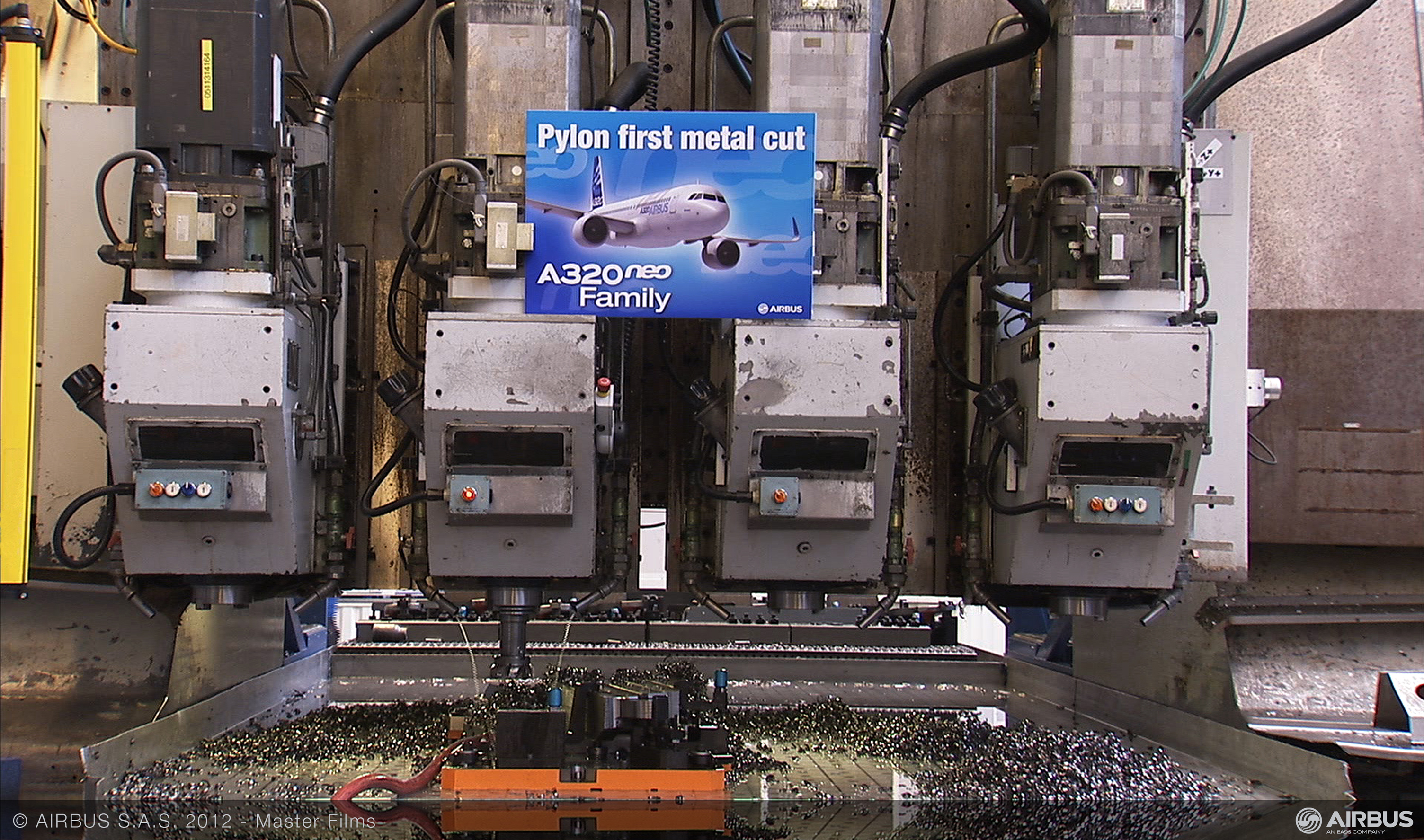 Tom Williams, Executive Vice President of Programmes at Airbus said: “This first metal cut of the engine pylon component for the A320neo heralds the completion of the design phase and start of production for the world’s fastest selling airliner. We are excited to be already starting manufacture of the world most eco-efficient single-aisle airliner today.”