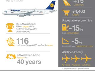 - Lufthansa, Airbus and Pratt & Whitney holding a delivery ceremony in Hamburg – First scheduled A320neo flights with better fuel efficiency and more passenger comfort achieved through quieter engines - 40 years of partnership between Lufthansa and Airbus