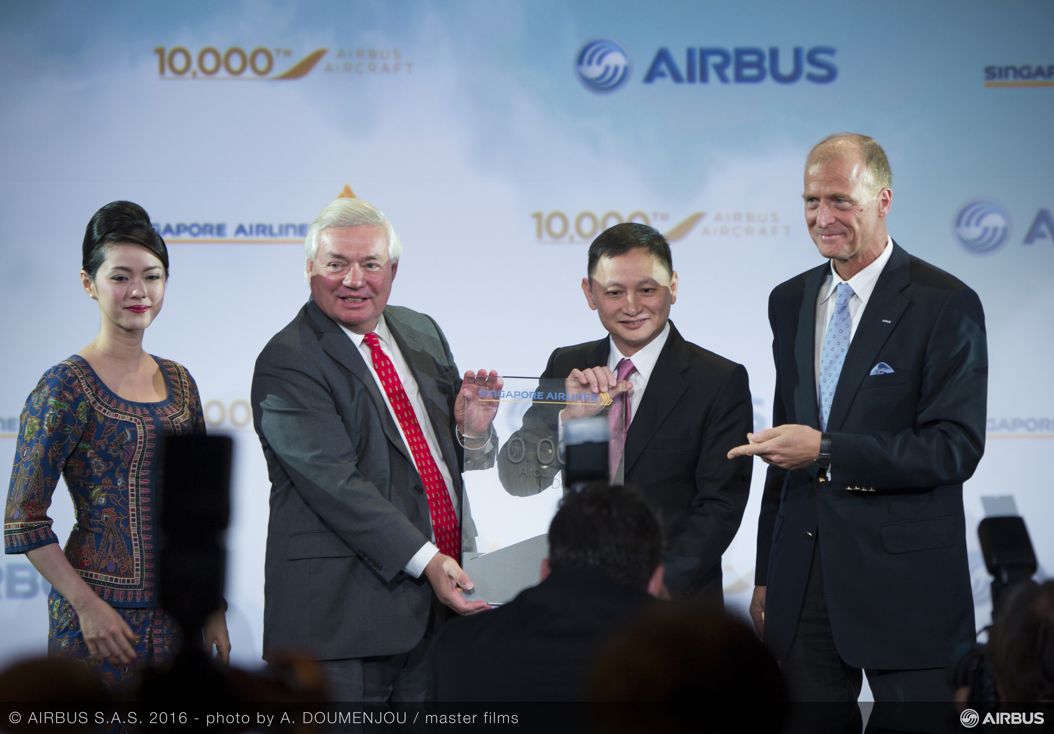 Airbus today celebrated the delivery of its 10,000th aircraft - an A350-900 for Singapore Airlines. The milestone event was marked by a special ceremony in Toulouse hosted by Airbus Group CEO Tom Enders and attended by Goh Choon Phong, CEO of Singapore Airlines.