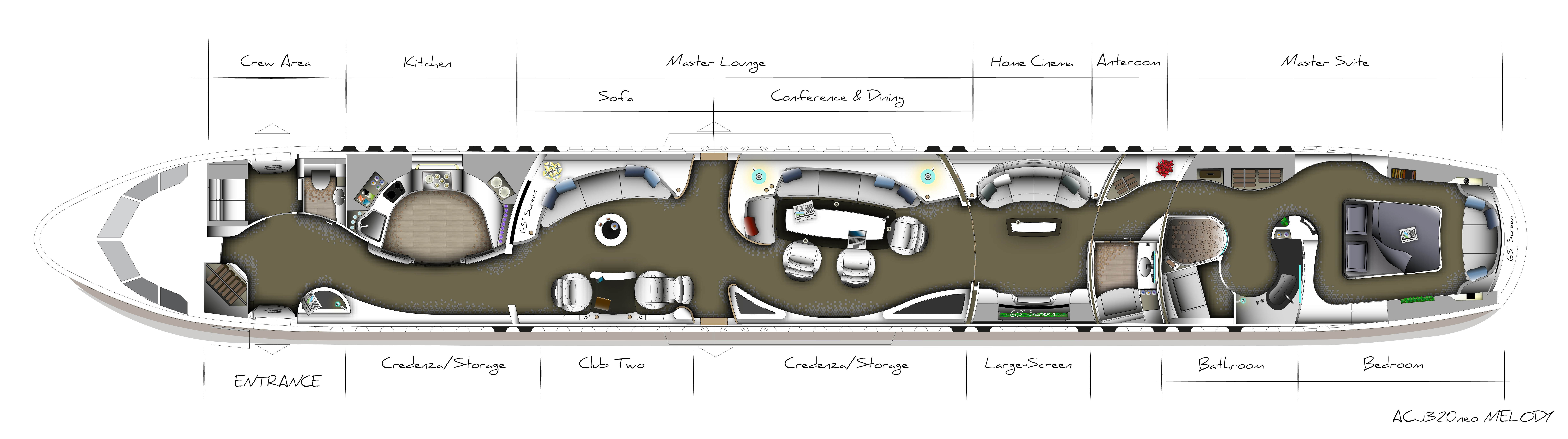 “A key feature of Airbus corporate jets is the better travel experience that they deliver – through freedom of movement and enhanced sociability as well as their greater space and comfort – and the new Melody cabin highlights this benefit over traditional business jets,” declares Airbus Chief Operating Officer, Customers John Leahy.