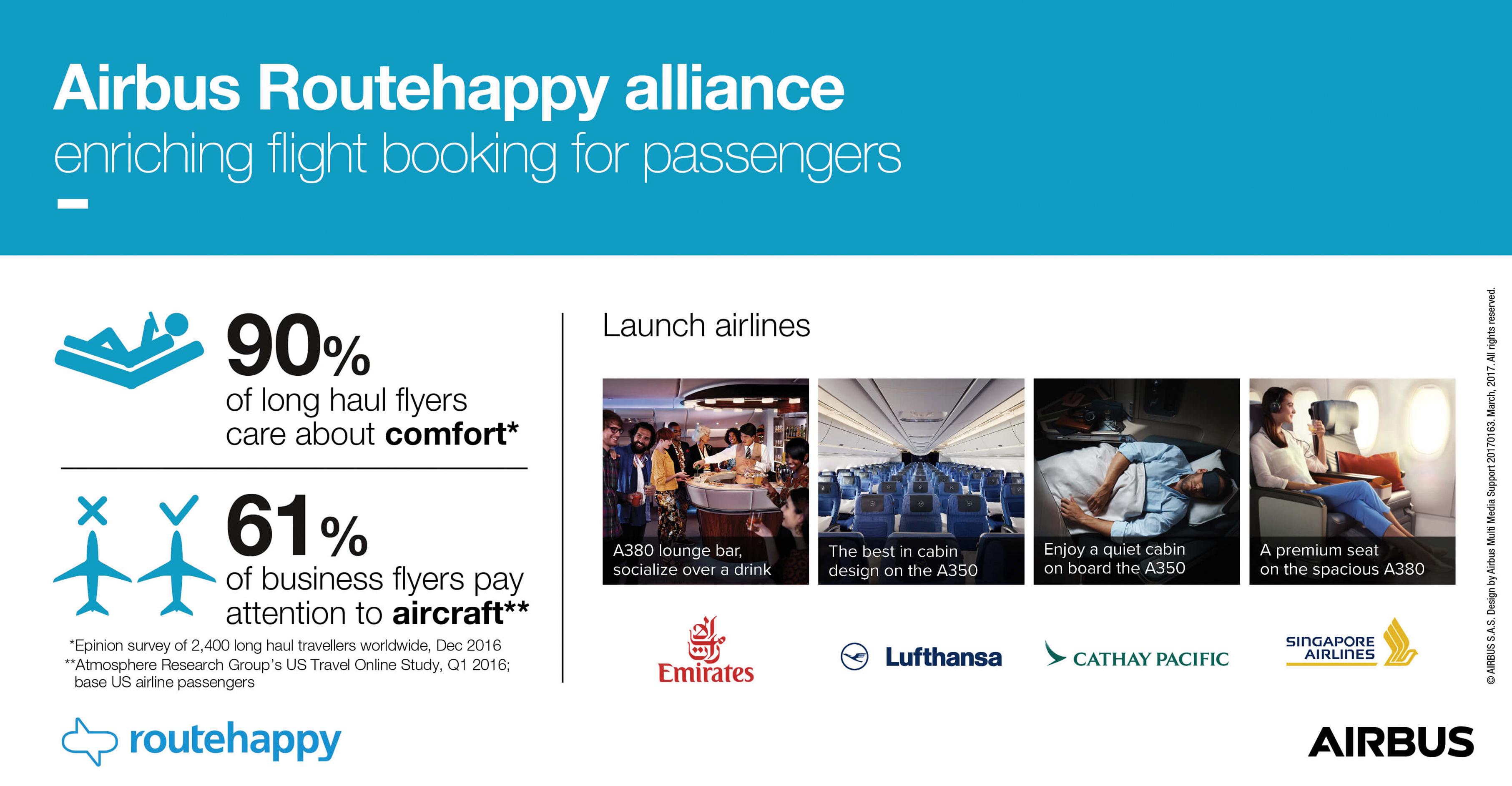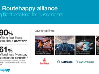 Joining the Airbus Routehappy alliance today are four of the world’s leading carriers: Cathay Pacific, Emirates, Lufthansa Group and Singapore Airlines.