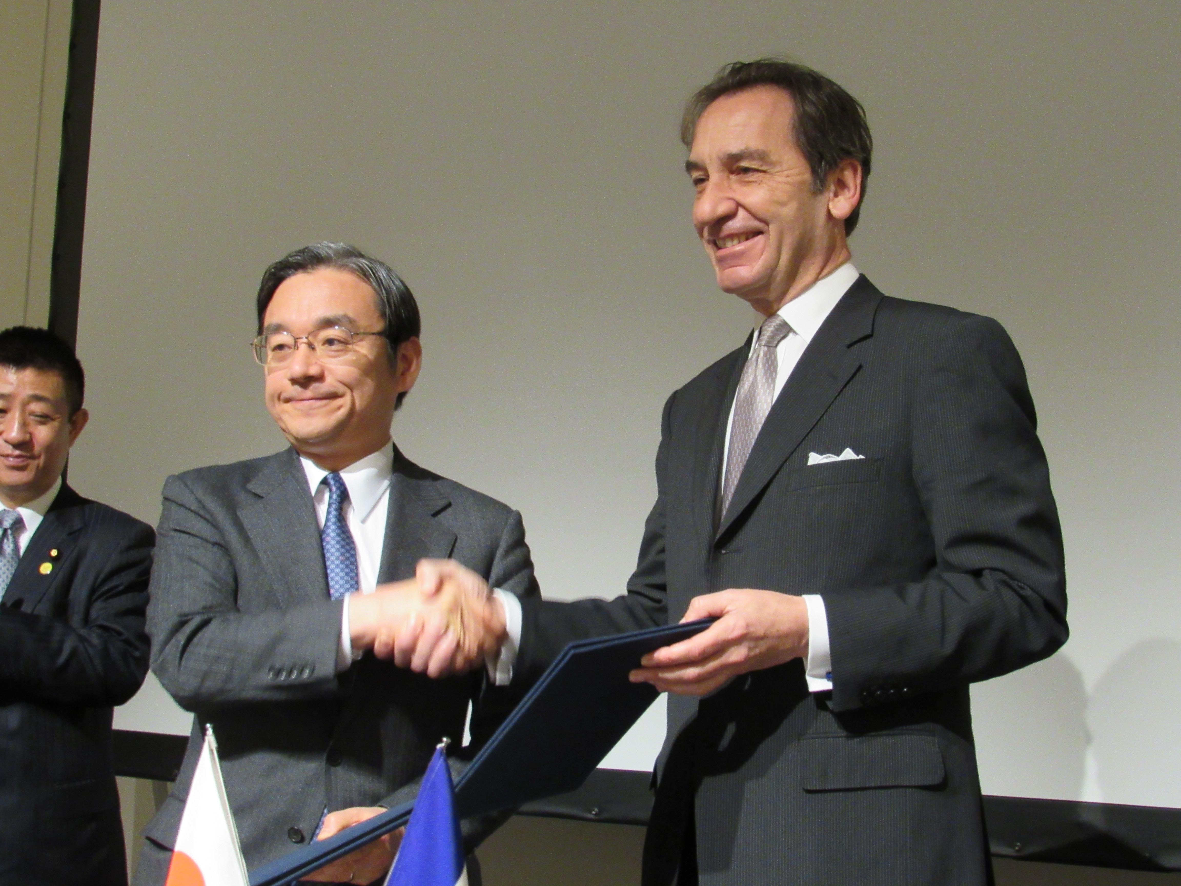 The agreement was signed today in Tokyo between Toshihide Kasutani, Director-General, Manufacturing Industries Bureau of METI, and Thierry Dana, French Ambassador to Japan.