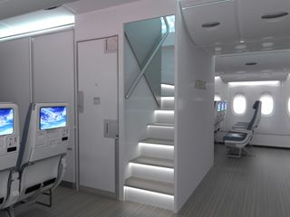 The NFS involves relocation of the forward stair from Door 1 to Door 2, and combining the entrance of the NFS to the upper deck (going up), with the adjacent staircase to the lower-deck crew-rest (going down). The NFS would make room for up to 20 additional passengers.