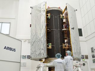Friedrichshafen, 16/08/2017 - Airbus successfully tests the dispenser structure that will hold the twin satellites GRACE-FO (GRACE = Gravity Recovery and Climate Experiment, FO= Follow-On) during their launch. Once the satellites are integrated in place, the assembly to the launcher or fit check test is carried out. This test is used to demonstrate the mechanical and electrical compatibility between the satellites, the dispenser, and the launcher. Airbus (Friedrichshafen / Germany) is developing and manufacturing the GRACE-FO satellites on behalf of NASA’s Jet Propulsion Laboratory.