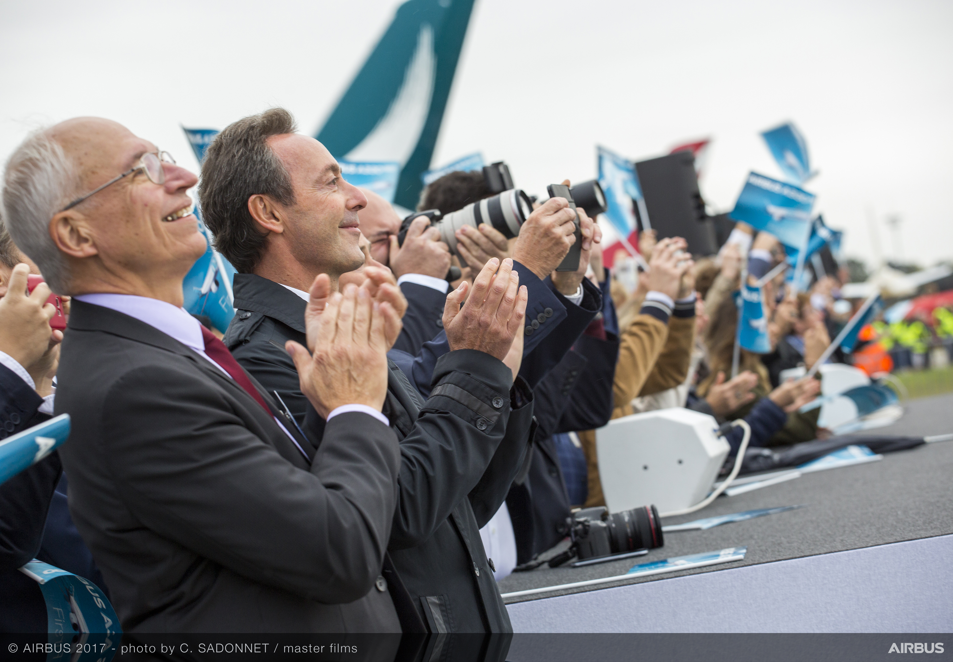 The crew in the cockpit on board this flight comprise: Experimental Test Pilots Thierry BOURGES, Thomas WILHELM and Test-Flight Engineer Alain POURCHET. Meanwhile, monitoring the aircraft systems and performance in real-time at the flight-test-engineer’s (FTE) station are Jean-Philippe COTTET, Emiliano REQUENA ESTEBAN and Gert WUNDERLICH.