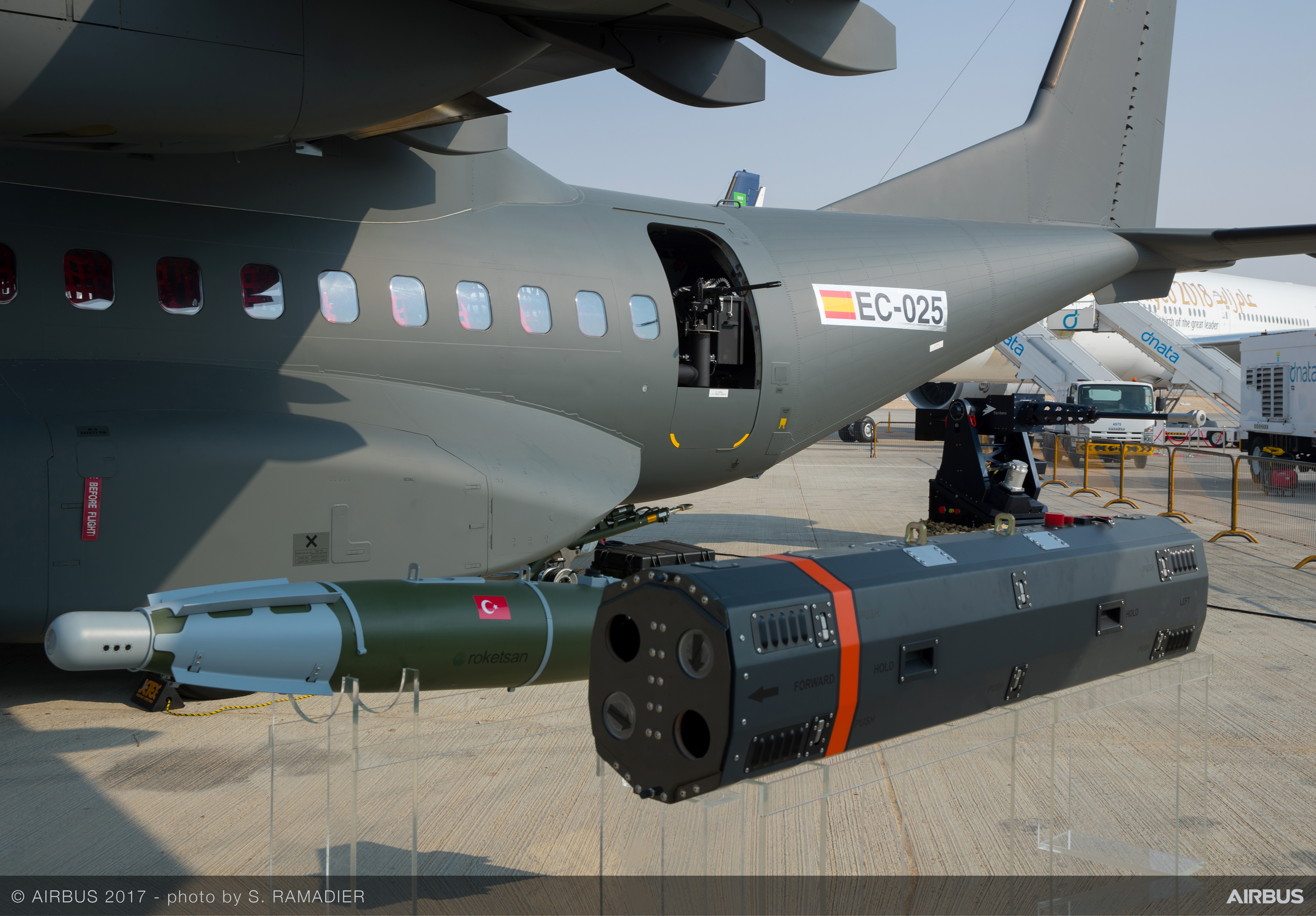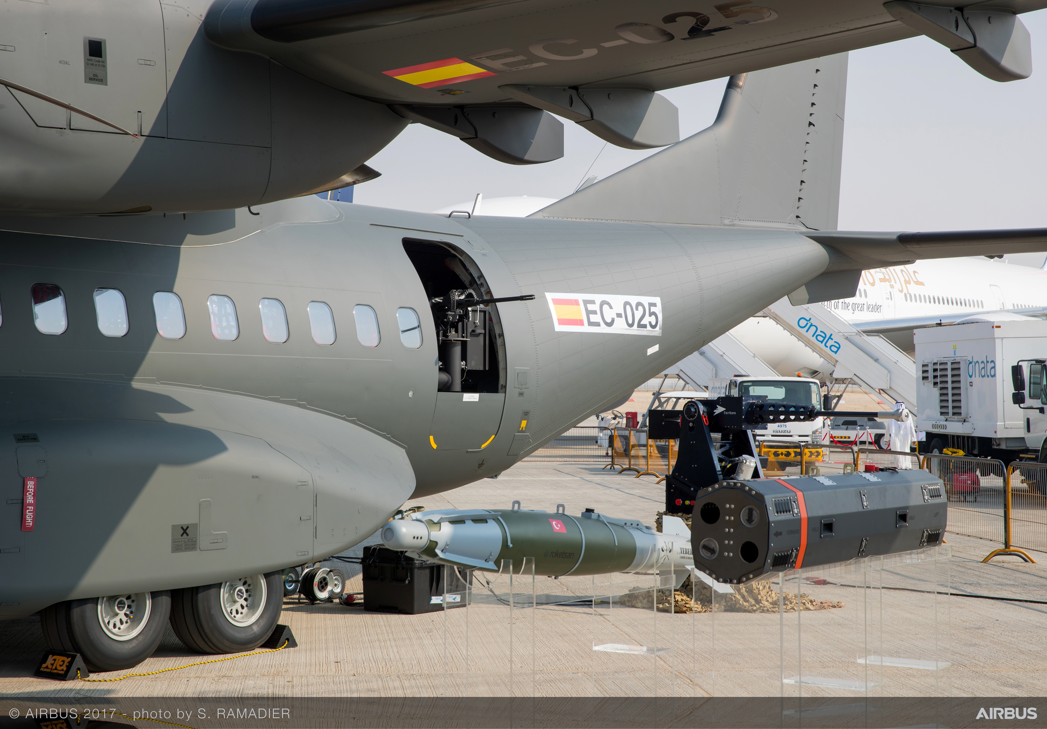 Airbus Defence and Space is showcasing its new C295 Armed ISR (Intelligence Surveillance & Reconnaissance) version at the Dubai Airshow. A C295 is exhibited on static display flanked by a wide range of weapons which have been selected to be integrated onto this versatile platform.
