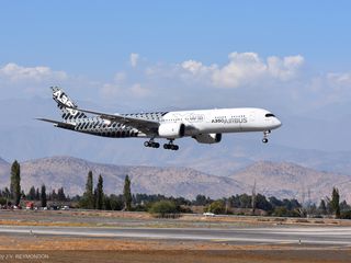 The A350-900 flight test aircraft arrived at Santiago Chile’s Arturo Merino Benitez Airport for the 20th edition of the FIDAE air show, where it will be on static display and take part in flying demonstrations between 2-5 April.