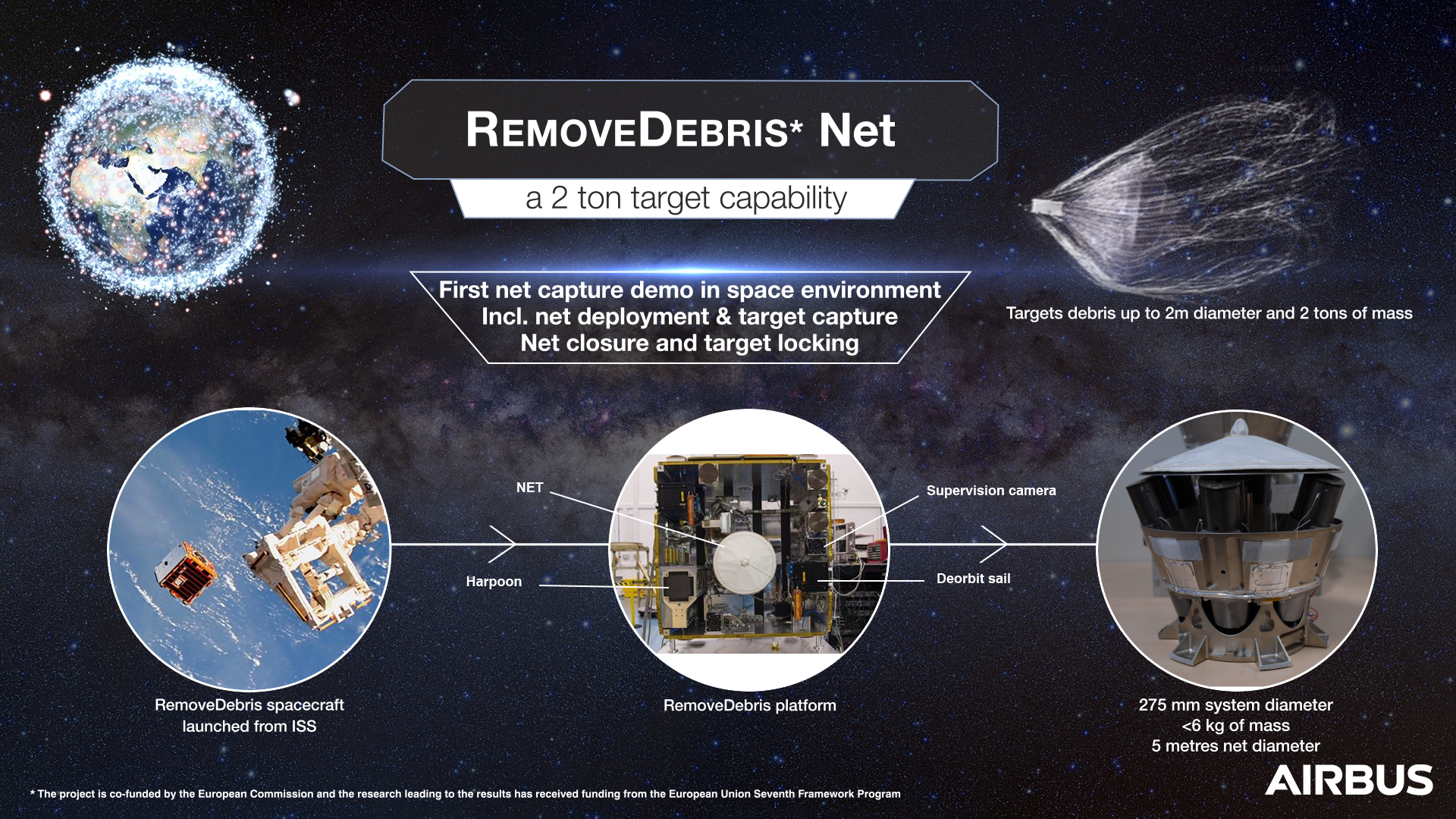 Airbus net, vision based navigation, and harpoon experiments will deploy in orbit