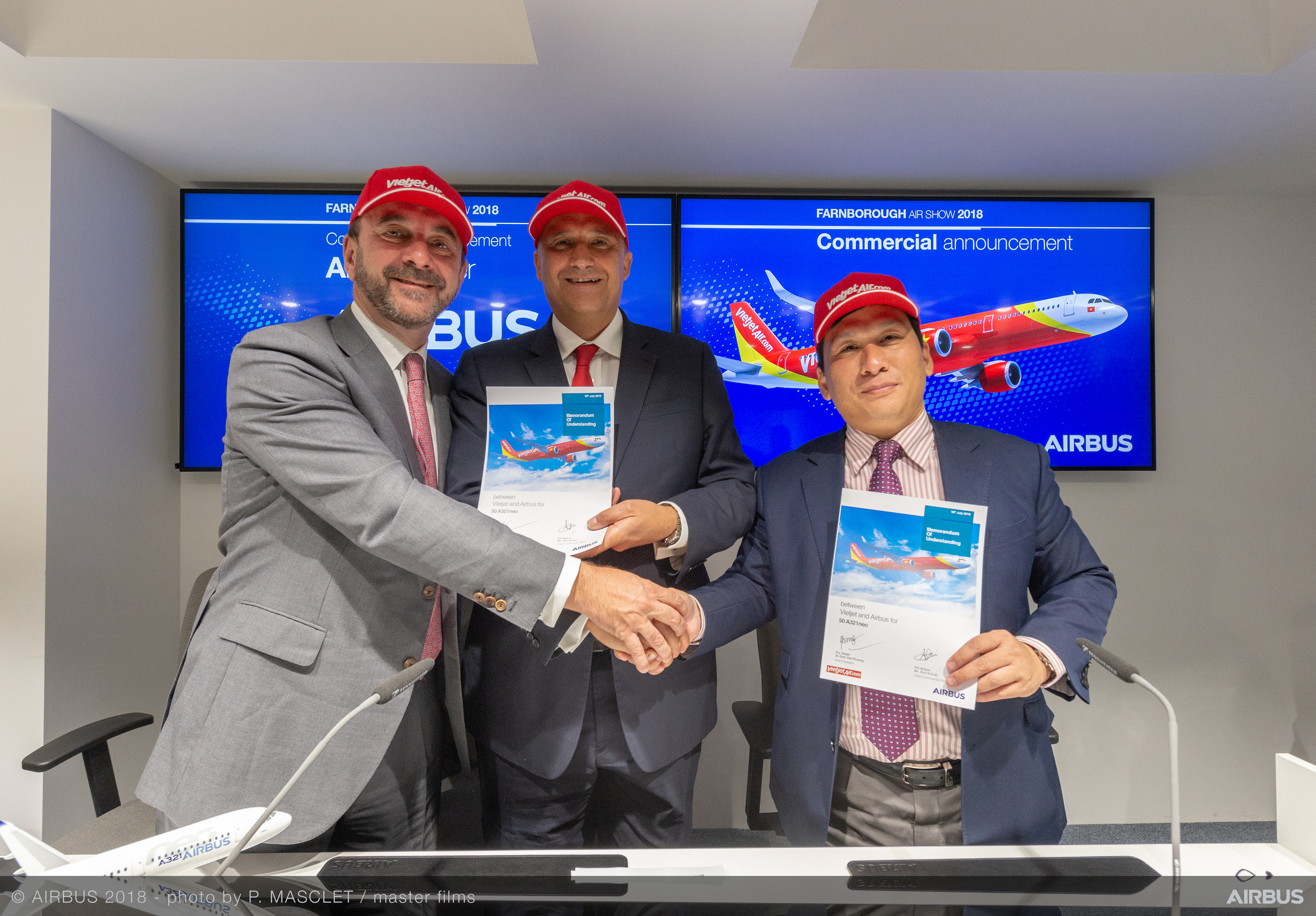 Vietnamese carrier Vietjet has signed a Memorandum of Understanding with Airbus for the purchase of an additional 50 A321neo single aisle aircraft. The agreement was announced at the Farnborough Air Show today by Vietjet Vice President Dinh Viet Phuong and Eric Schulz, Airbus Chief Commercial Officer.