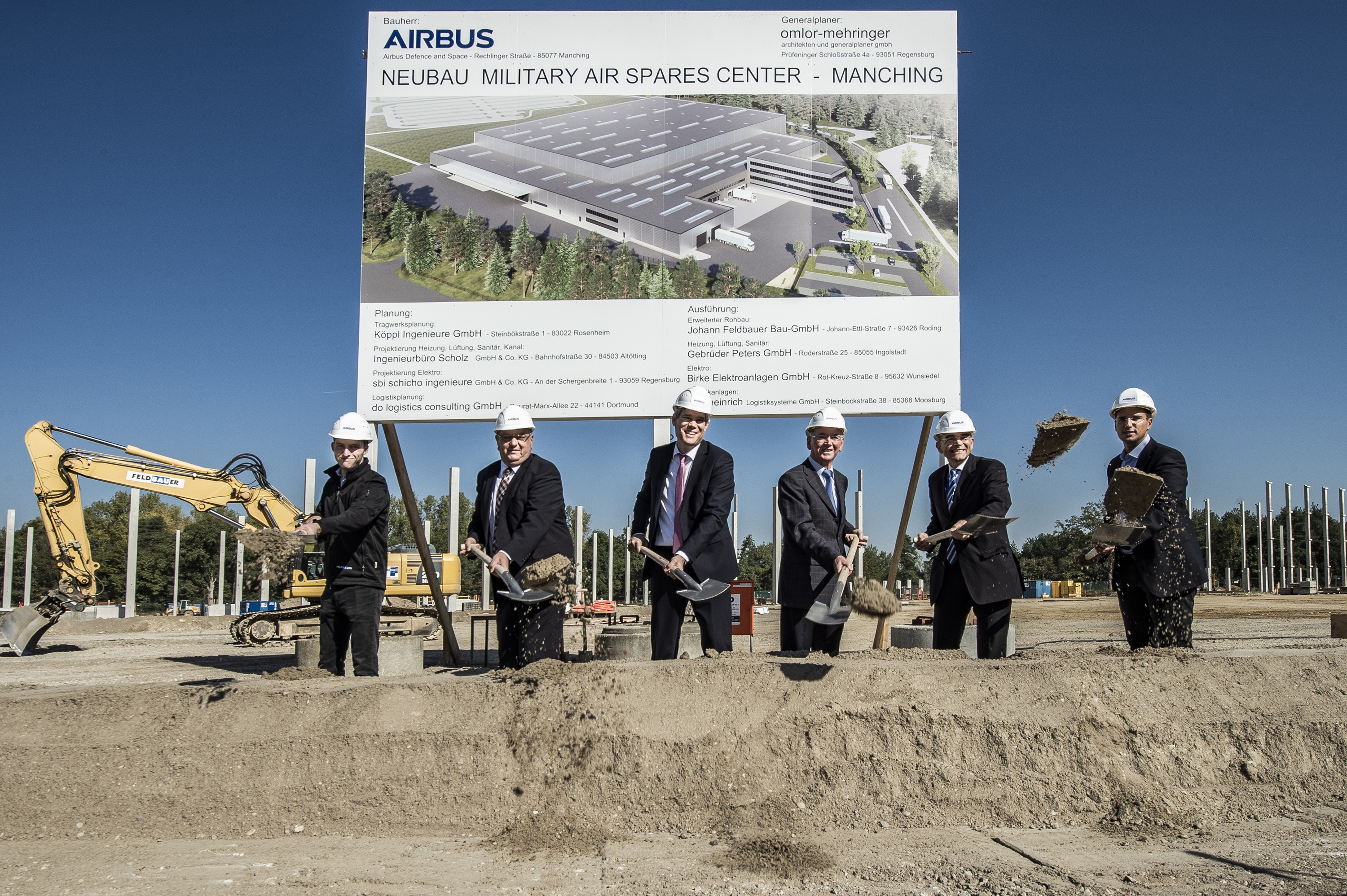 Manching, 28 September 2018 – Airbus Defence and Space is investing around € 60 million into a new logistics centre for spare parts of military aircraft (Military Air Spares Centre – MASC) at Manching to the north of Munich. In the presence of the authorities, an official groundbreaking ceremony has marked the start of construction works.