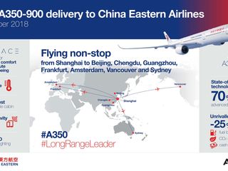 China Eastern Airlines has taken delivery of its first A350-900 in Toulouse, becoming the latest operator of this efficient twin-engine widebody aircraft. The Shanghai-based carrier now operates an Airbus fleet of 356 aircraft, including 306 A320 Family aircraft and 50 A330 Family aircraft (figures at the end of October 2018). China Eastern is the largest Airbus operator in Asia and second largest in the world.