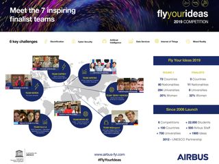 Airbus Fly Your Ideas is a global competition challenging students worldwide to innovate for the future of aerospace, designed and launched by Airbus in 2008 and organised in partnership with UNESCO since 2012. Since 2008, over 22,000 students have registered for Fly Your Ideas from over 700 universities and 100 countries worldwide, with more than 500 Airbus employees contributing their mentorship and expertise to support the competition.