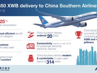 China Southern’s A350-900 aircraft features a modern and comfortable three-class cabin layout of 314 seats: 28 business, 24 premium economy and 262 economy. The airline will initially operate the new aircraft on its domestic routes from Guangzhou to Shanghai and Beijing, followed by flights to international destinations.