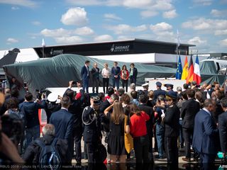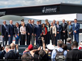 Le Bourget, 17 June 2019 – Dassault Aviation and Airbus SE have delivered a joint industrial proposal to the governments of France and Germany for the first Demonstrator Phase of the Future Combat Air System (FCAS). This next major milestone achievement in the programme was showcased by the reveal of the New Generation Fighter and Remote Carriers models to a world public on the opening day of the 2019 Paris Air Show. The reveal of the models by Eric Trappier, Chairman and Chief Executive Officer (CEO) of Dassault Aviation and Dirk Hoke, CEO of Airbus Defence and Space was witnessed by the host of the opening ceremony at Le Bourget airport, President of the French Republic, Emmanuel Macron, and the French Minister of the Armed Forces, Florence Parly, the German Federal Minister of Defence, Ursula von der Leyen and the Spanish Minister of Defence, Margarita Robles.
