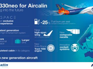 The A330neos will boost capacity and non-stop connectivity between the French Pacific Island territory and markets in Japan, Australia and the Pacific Islands nations, cutting fuel burn by 25% per seat (compared with previous generation competitors) and providing passengers with the latest standards in cabin comfort. These routes provide essential links to tourism as well as business traffic, which are essential to the New Caledonia economy.