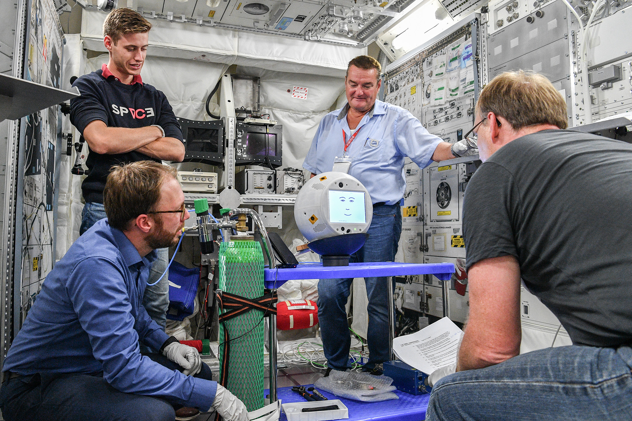 Just like its predecessor, the second CIMON is being built by Airbus in Friedrichshafen and Bremen on behalf of the DLR Space Administration and is being funded by the German Federal Ministry for Economic Affairs and Energy (Bundesministerium für Wirtschaft und Energie; BMWi). Airbus in Friedrichshafen has assembled and tested the hardware for the new CIMON, while Airbus in Bremen is working to improve the software for flight and attitude control. IBM is implementing new AI features. “All in all there are several upgrades, including better microphones, a more robust computer, improved flight and attitude control, and new software features for conversation – for example in the areas of voice recognition, conversational skills and understanding intentions,” explains Till Eisenberg, CIMON Project Manager at Airbus.