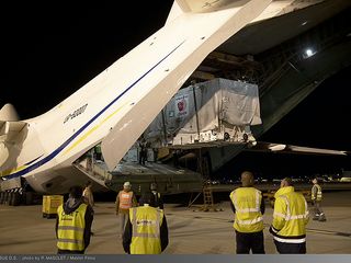 Toulouse, 16 October, 2019 – CHEOPS (CHaracterising ExOPlanet Satellite), built by Airbus in Madrid was loaded into the freighter aircraft that flew it today to Kourou, French Guiana. After arrival, the spacecraft will be prepared for its launch in mid-December on a Soyuz launcher.