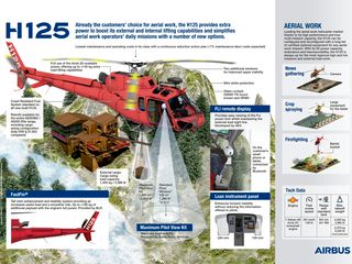 “I am very happy to be presenting these new H125 features, which are the result of a continuous dialogue with our customers” declared Axel Aloccio, Head of the Intermediate Single Programme. “The extra power offered by the H125 raises the bar within the single engine helicopter market to reach levels never attained up to now by such platforms and confirms the superiority of the H125 in terms of payload and value for money. And our new options for the aerial work market segment will not only simplify our customer’s daily missions, but more importantly, will further increase the safety of these very demanding operations”.