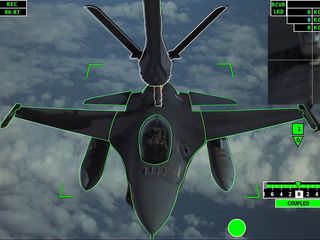 Photo caption: The picture shows the first fully automated refuelling contacts between an Airbus tanker test aircraft and a Portuguese Air Force F-16 fighter jet.