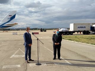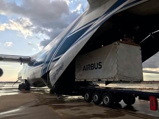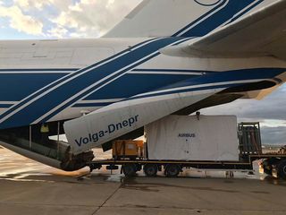 Madrid, 24 September 2020 – Last night, the Spanish satellite SEOSAT-Ingenio, built by Airbus, was loaded at the Torrejón de Ardóz air base, near Madrid, on board an Antonov 124 cargo plane to fly to the Kourou launch site. SEOSAT-Ingenio shares the flight to Guyana with the French satellite Taranis from CNES.