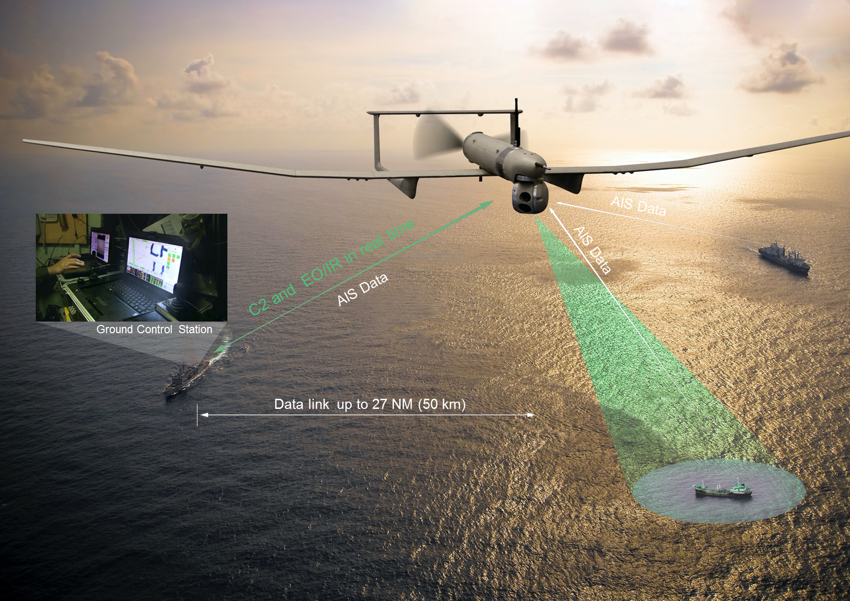 Similarly, the “user-friendly” ground control station enables the operator to constantly monitor the automatic flight of the UAS while receiving in real-time day and night images and AIS (Automatic Identification System) data gathered by its on-board sensors.