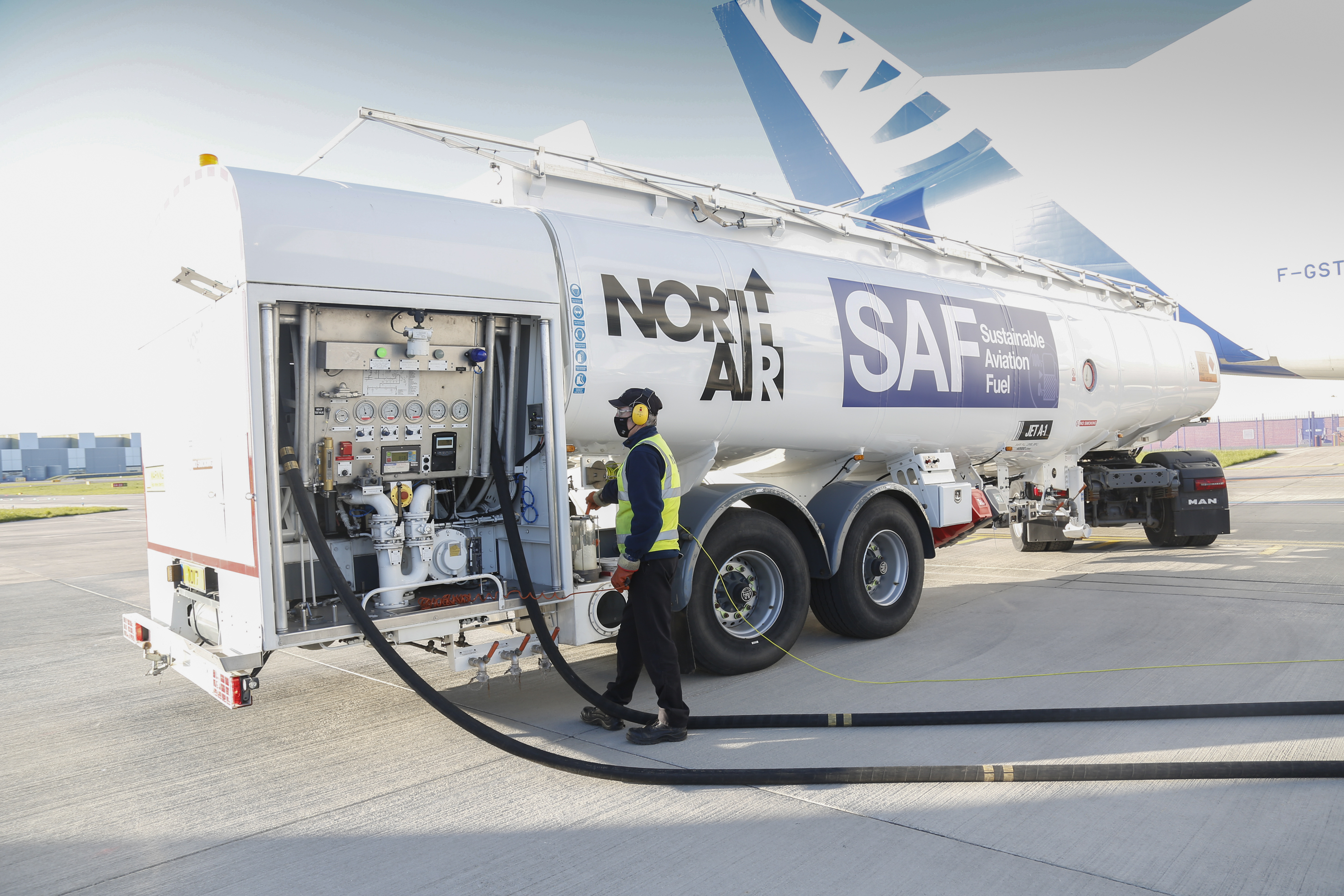 The SAF used by the Beluga fleet is made from used sustainable feedstocks, such as cooking oil, and supplied to Airbus in Broughton and Hamburg by Air bp.