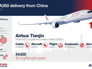 “I’m proud that Airbus successfully extended the capability of the widebody C&DC in Tianjin to the A350, the latest new generation aircraft, at such a difficult time of global aviation,” said George Xu, Airbus Executive Vice President and Airbus China CEO. “This is a new milestone in the long-term cooperation between China and Airbus, which further demonstrates Airbus’ commitment to the country. Congratulations to China Eastern Airlines, our long-term strategic partner, for receiving the first A350 delivered from China, and I appreciate their trust in Airbus and in our products as always.”