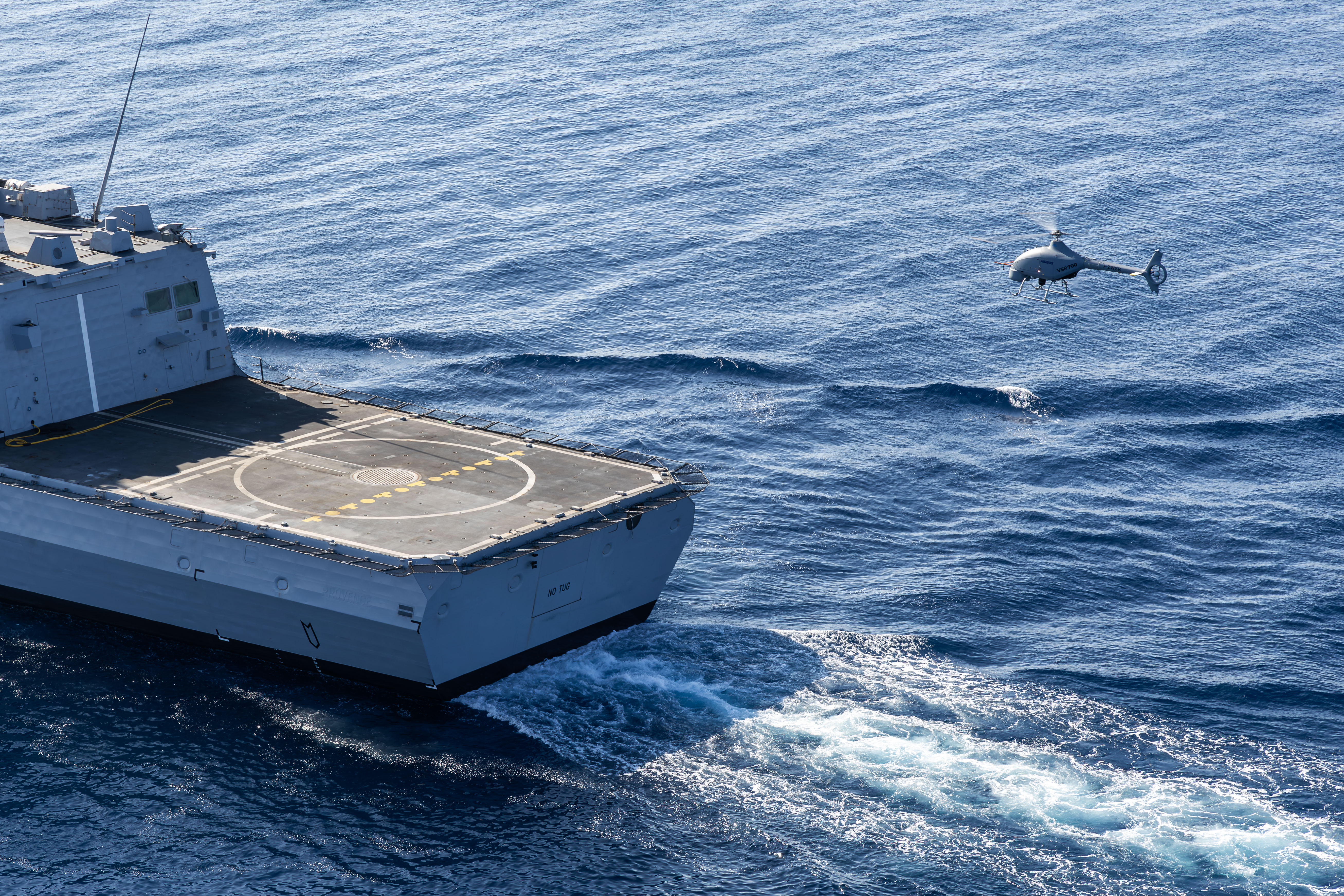 Marignane – Airbus Helicopters and Naval Group, in collaboration with the French Armament General Directorate, DGA (Direction génerale de l’armement), and the French Navy, have tested the SDAM demonstrator (Système de Drone Aérien Marine/ Naval Aerial Drone System) from a multi-mission frigate (FREMM). The trials took place on board the French Navy frigate, Provence, in the Mediterranean Sea between the 2nd and the 9th of October. The vessel had previously been adapted by Naval Group to operate the SDAM. These sea trials were arranged to demonstrate the system’s high performance from an operational warship and the SDAM’s capabilities for surveillance and intelligence missions.