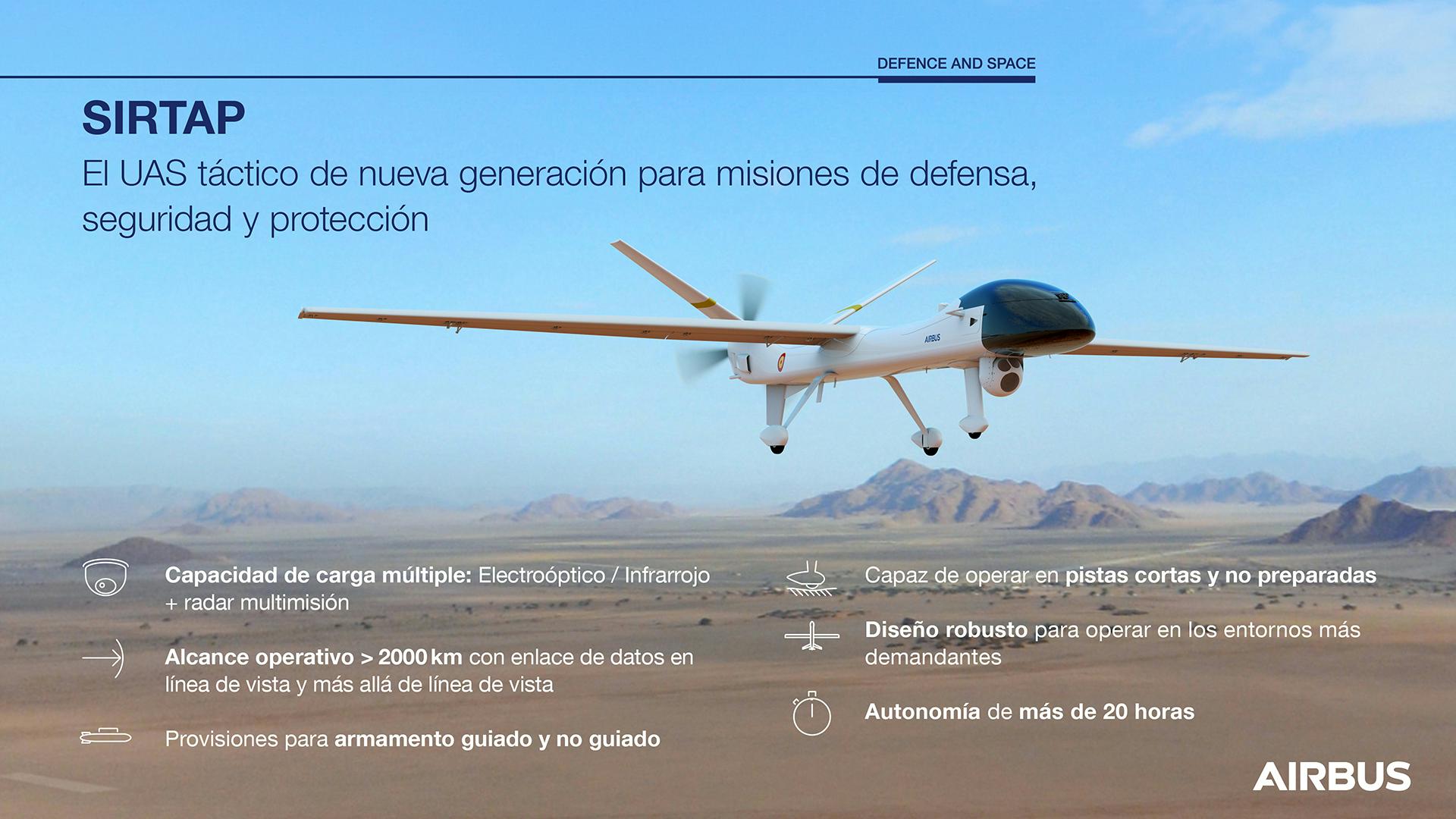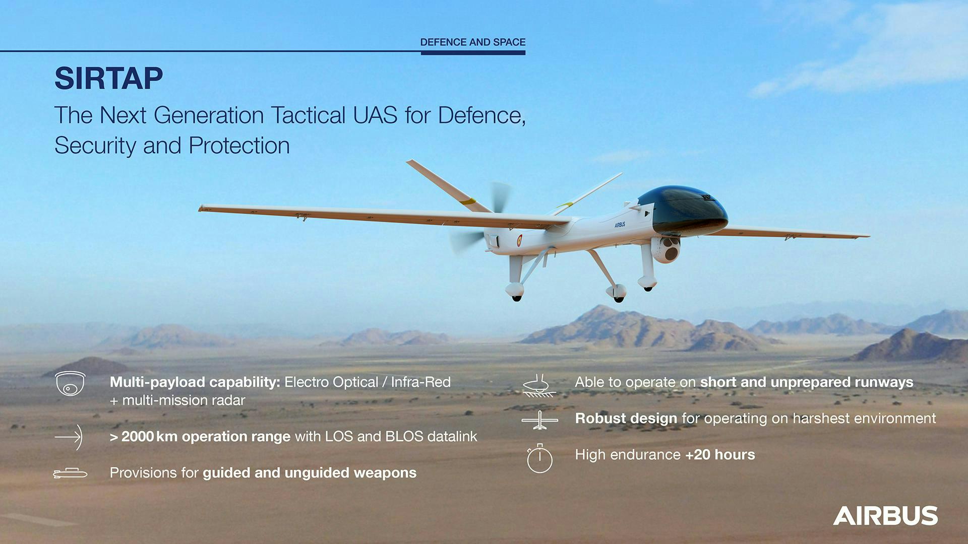 “This new technological milestone in the tactical UAS segment together with the Spanish Ministry of Defence, will reinforce national sovereignty. SIRTAP will be fully developed in Spain, integrating national capabilities. However, thanks to its versatility and the use of ITAR-free components, we also expect it to play a key role on the international market,” said Jean-Brice Dumont, Head of Military Air Systems at Airbus Defence and Space.