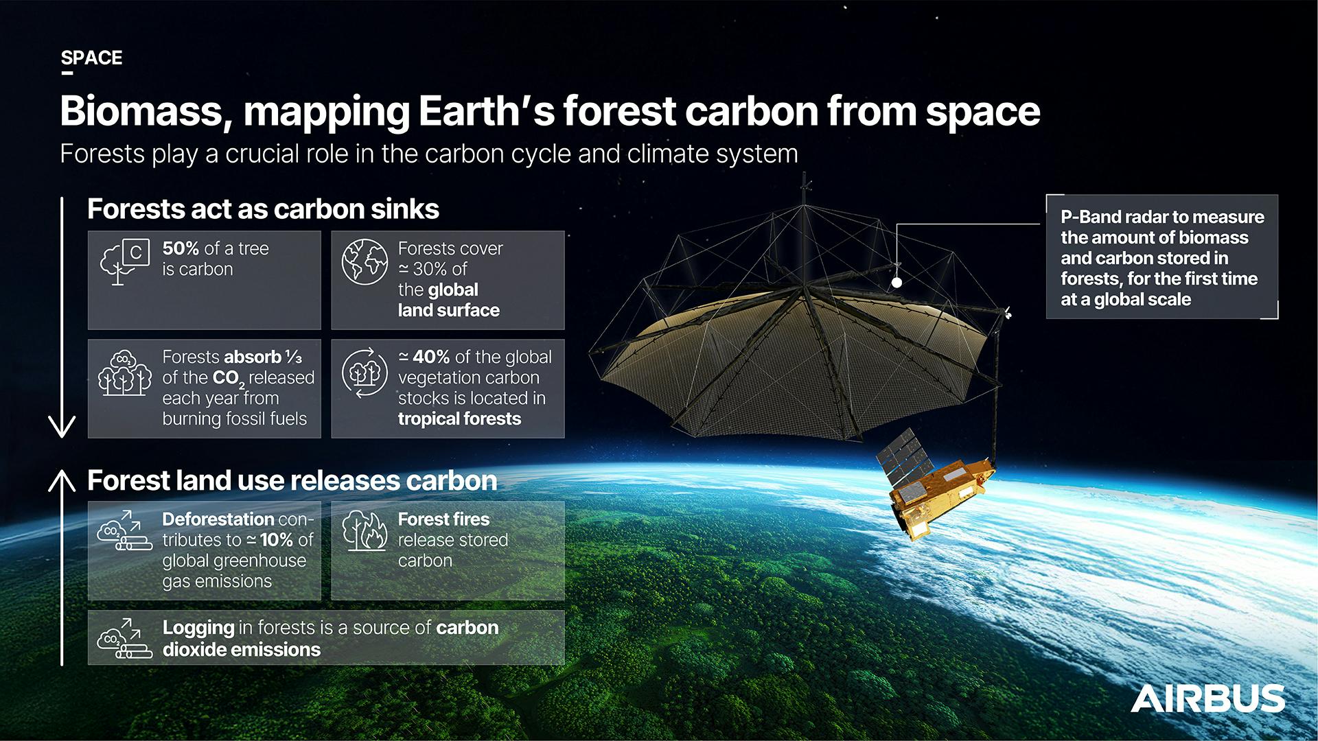 Toulouse, France, 29 April 2025 – The Airbus built forest monitoring satellite Biomass has been successfully launched into orbit. A European Space Agency (ESA) flagship mission, Biomass will use its revolutionary P-band synthetic aperture radar instrument to measure forest biomass to assess terrestrial carbon stocks and fluxes to enable scientists to better understand the carbon cycle and its effects on climate change.