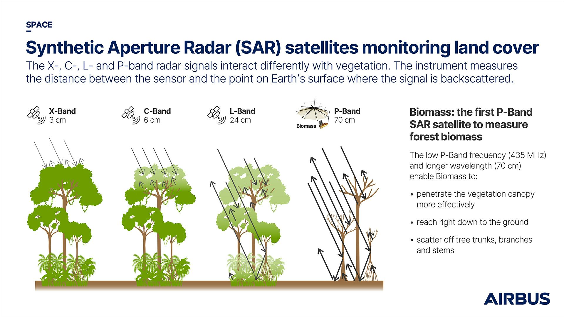 An ESA Earth Explorer mission, Biomass carries the first space-borne P-band radar, to deliver exceptionally accurate maps of tropical, temperate and boreal forest biomass to help improve the understanding of the part that forests play in regulating climate.